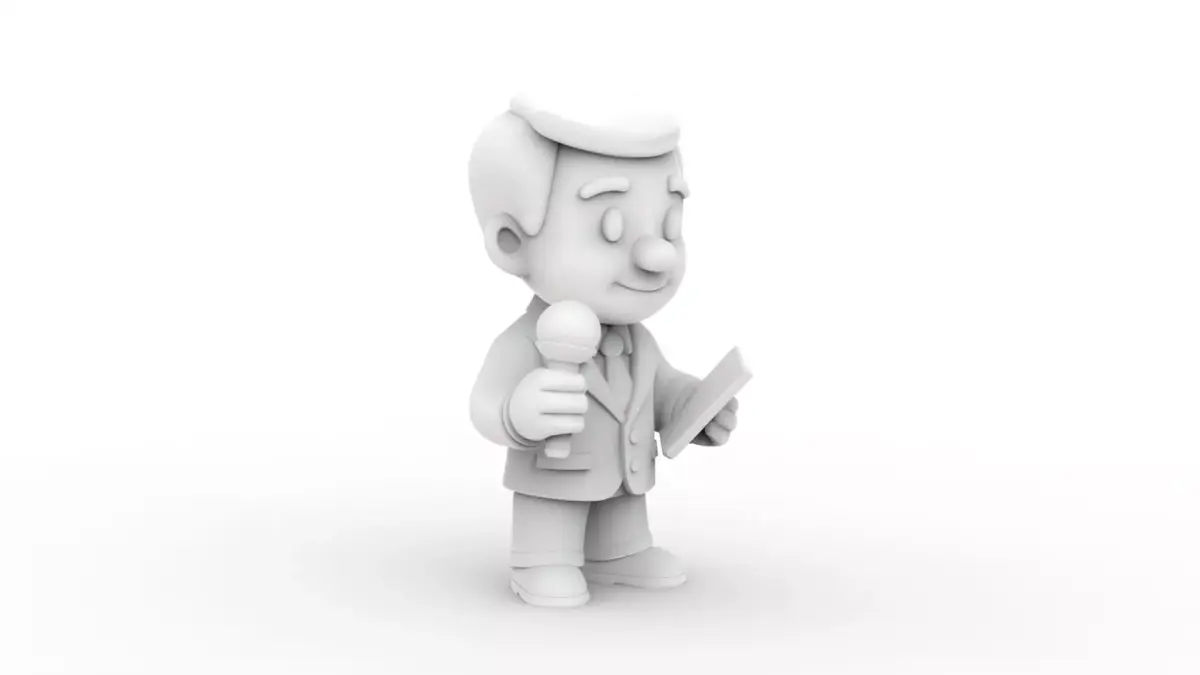 Perfectly suited for a variety of applications, the Cartoon Reporter model makes an excellent addition to 3D printing projects, collectible figure sets, tabletop role-playing games, or unique gift ideas. Its charming design—complete with a microphone, notepad, and classic suit—adds character and storytelling potential to any collection or game.