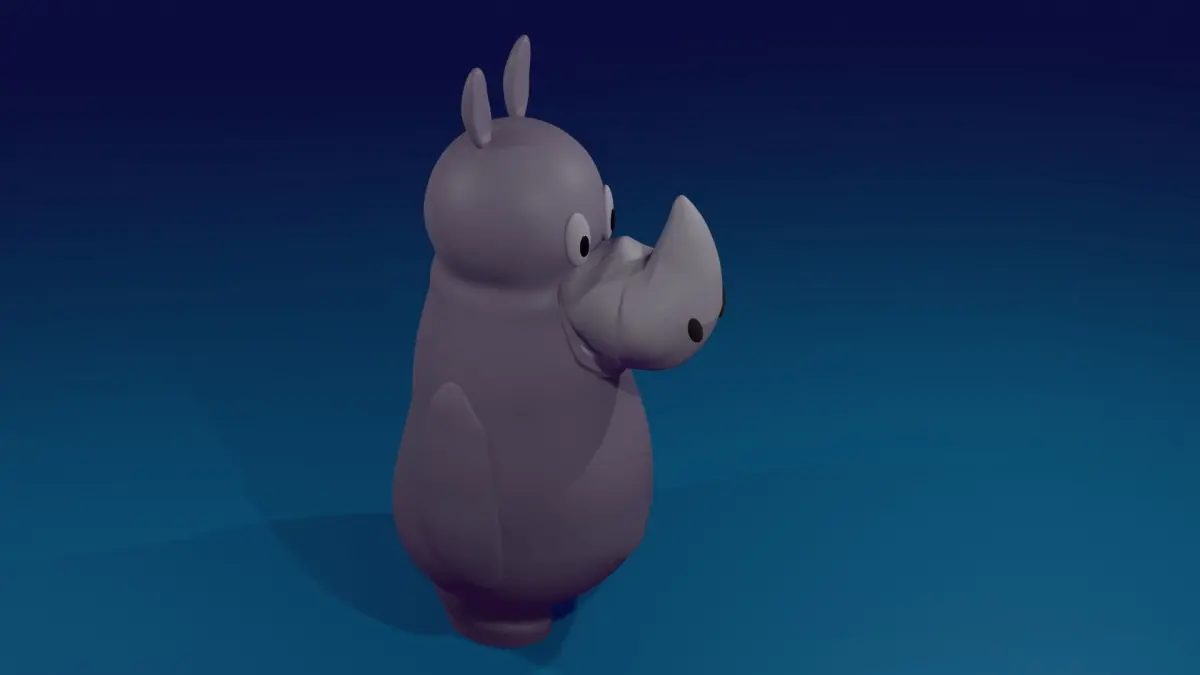 This little rhinoceros has just escaped from the zoo to take part in your game or animation. He is worried about his low-poly body since he is a bit overweight.