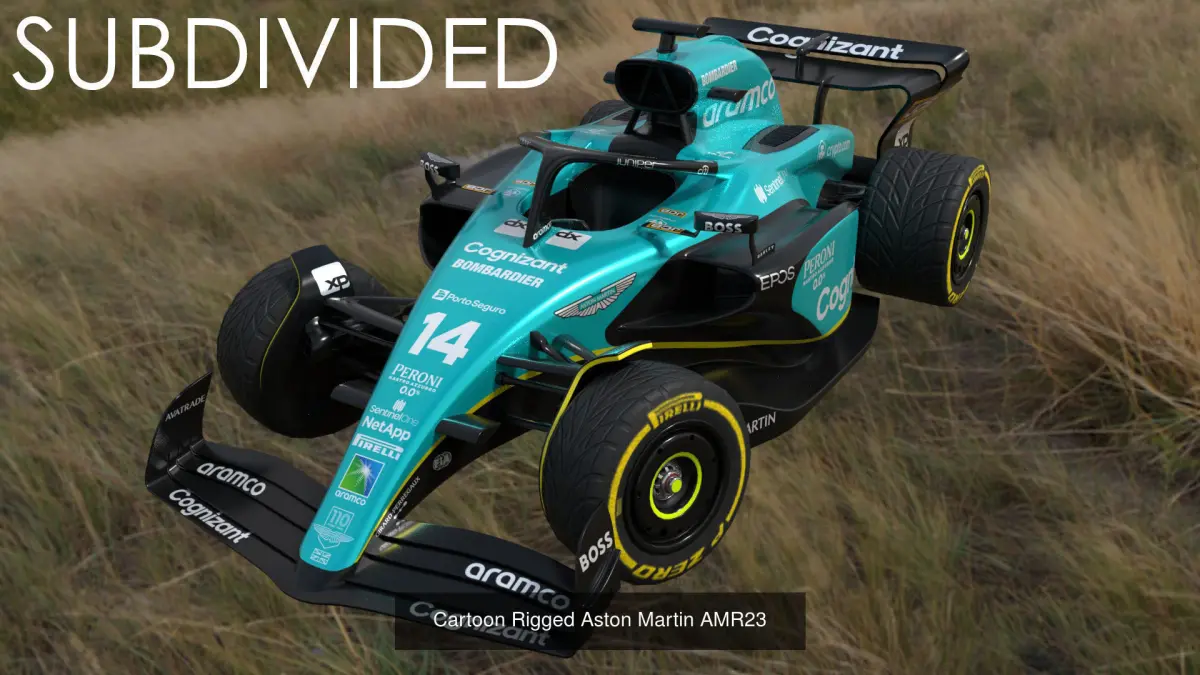 Aston Martin AMR23 and Ferrari F1-75 Animation for steering included. One single texture for each car(4096x4096 px, diffuse and bump)