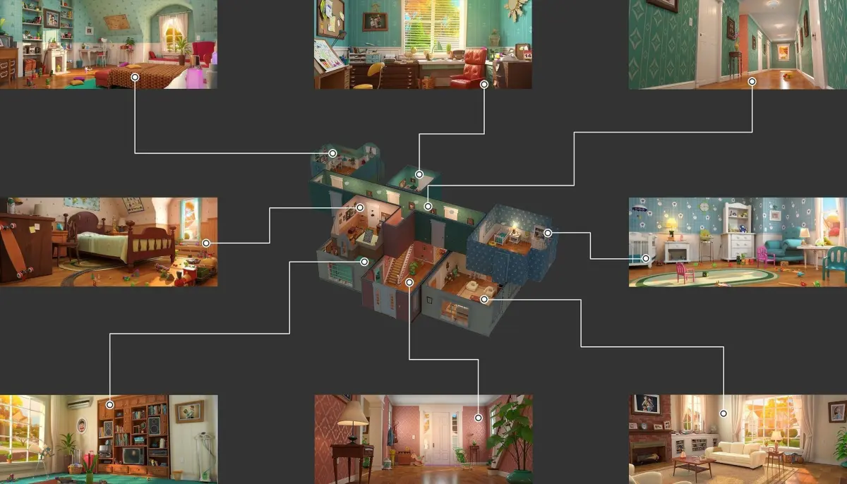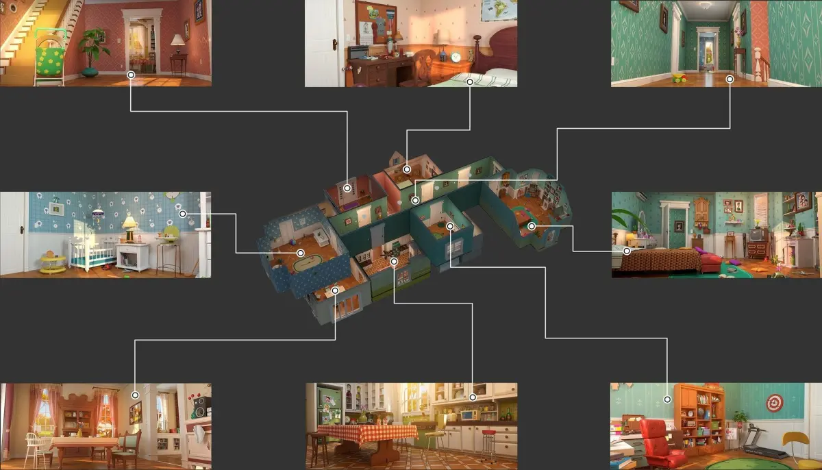 Contains 67 cameras, each camera has a corresponding light in outliner.