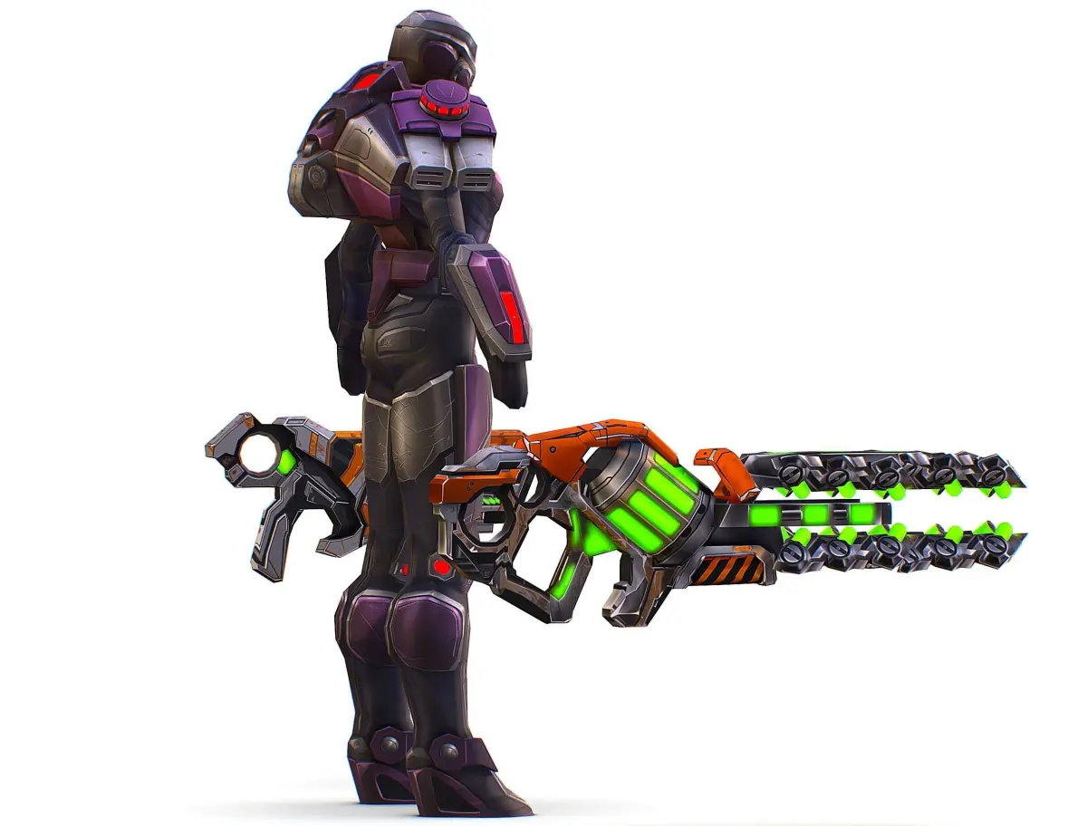Cartoon Sci-Fi Cyborg Drone Heavy Machine Gunner