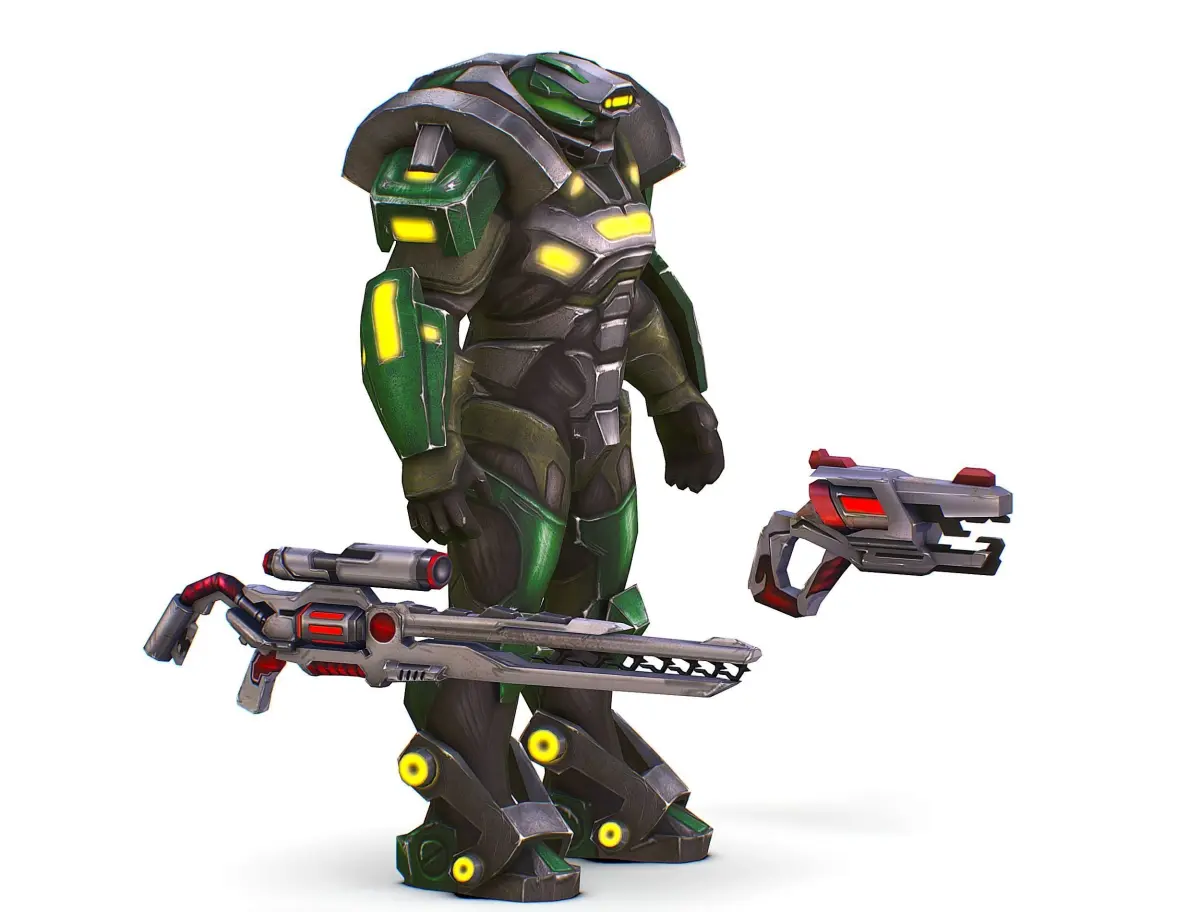Cartoon Sci-Fi Cyborg Drone Sniper Soldier Low-poly 3D model