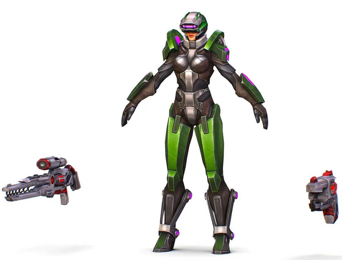Step into the future of 3D design with our low-poly model of a male soldier with a sniper rifle and pistol. This meticulously detailed model is the perfect blend of sci-fi aesthetics and practical functionality, ideal for game developers, animators and digital artists.