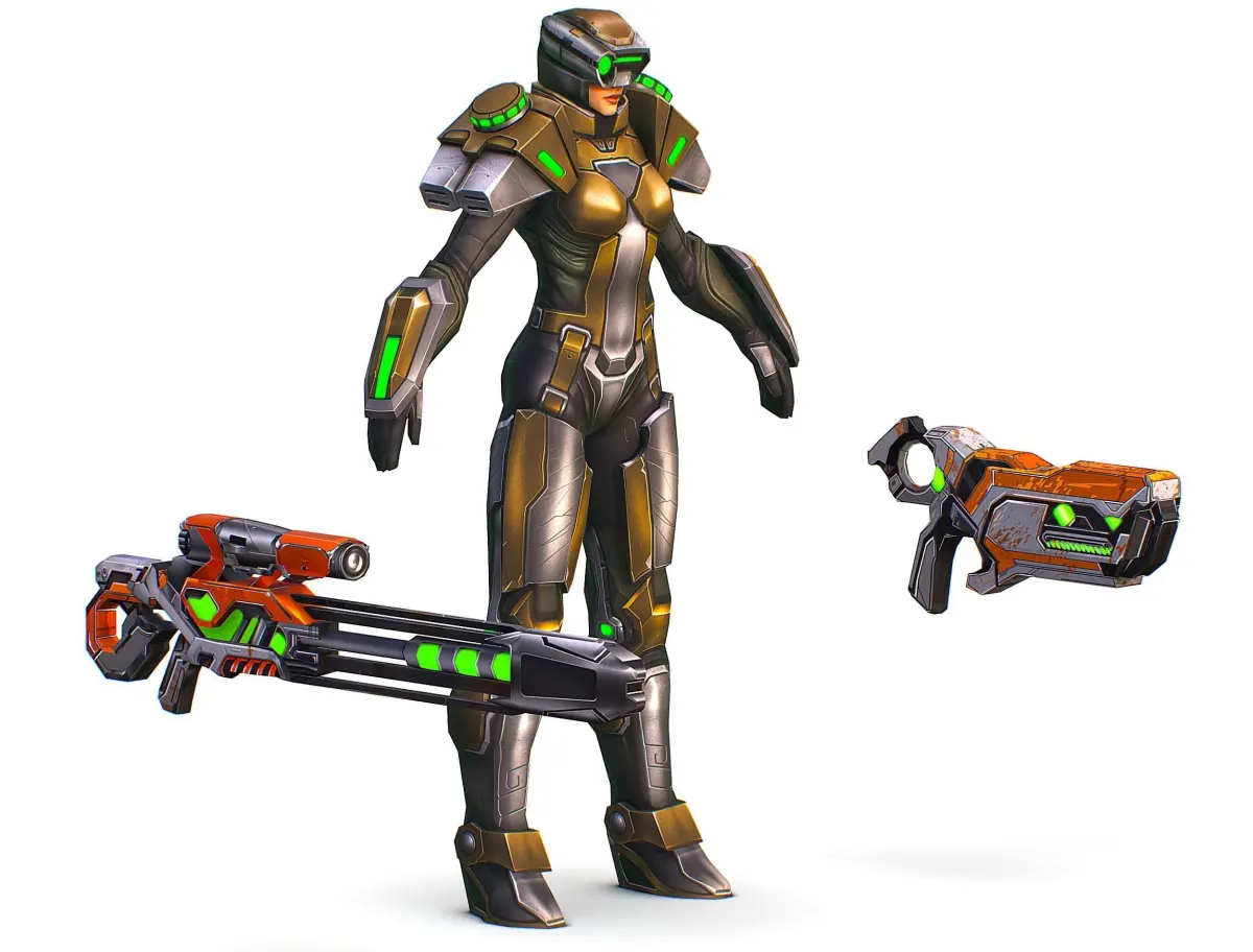 Step into the future of 3D design with our low-poly model of a male soldier with a sniper rifle and pistol. This meticulously detailed model is the perfect blend of sci-fi aesthetics and practical functionality, ideal for game developers, animators and digital artists.