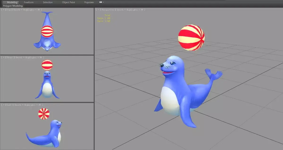 Cartoon sea lion performing in zoo Low-poly 3D model