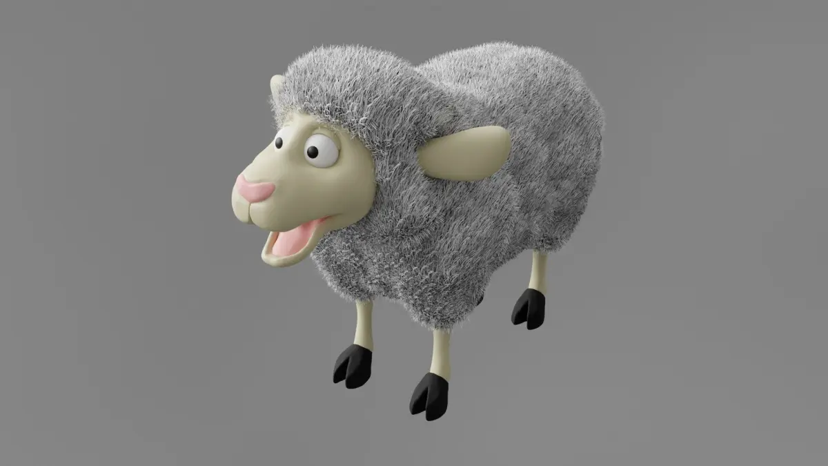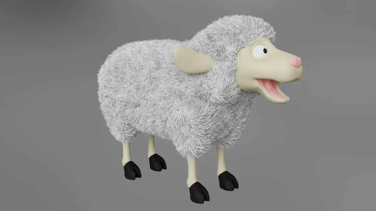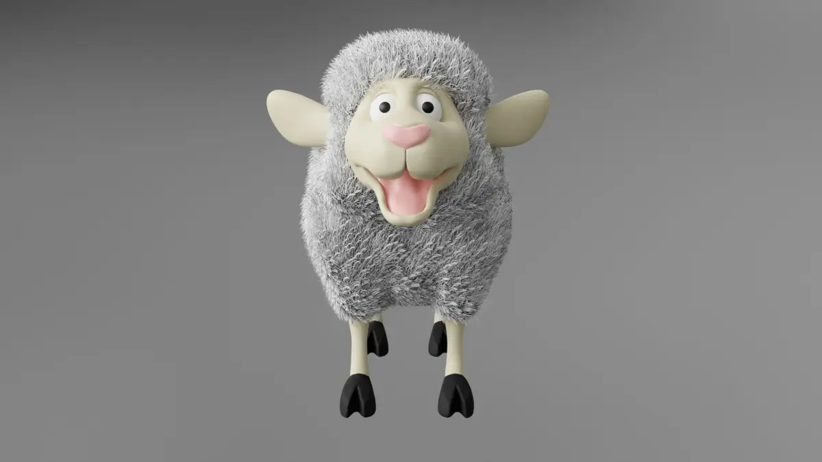 Had a go at designing a cartoon sheep in Blender, the model is a digital sculpt with particle hair to create a wool effect.