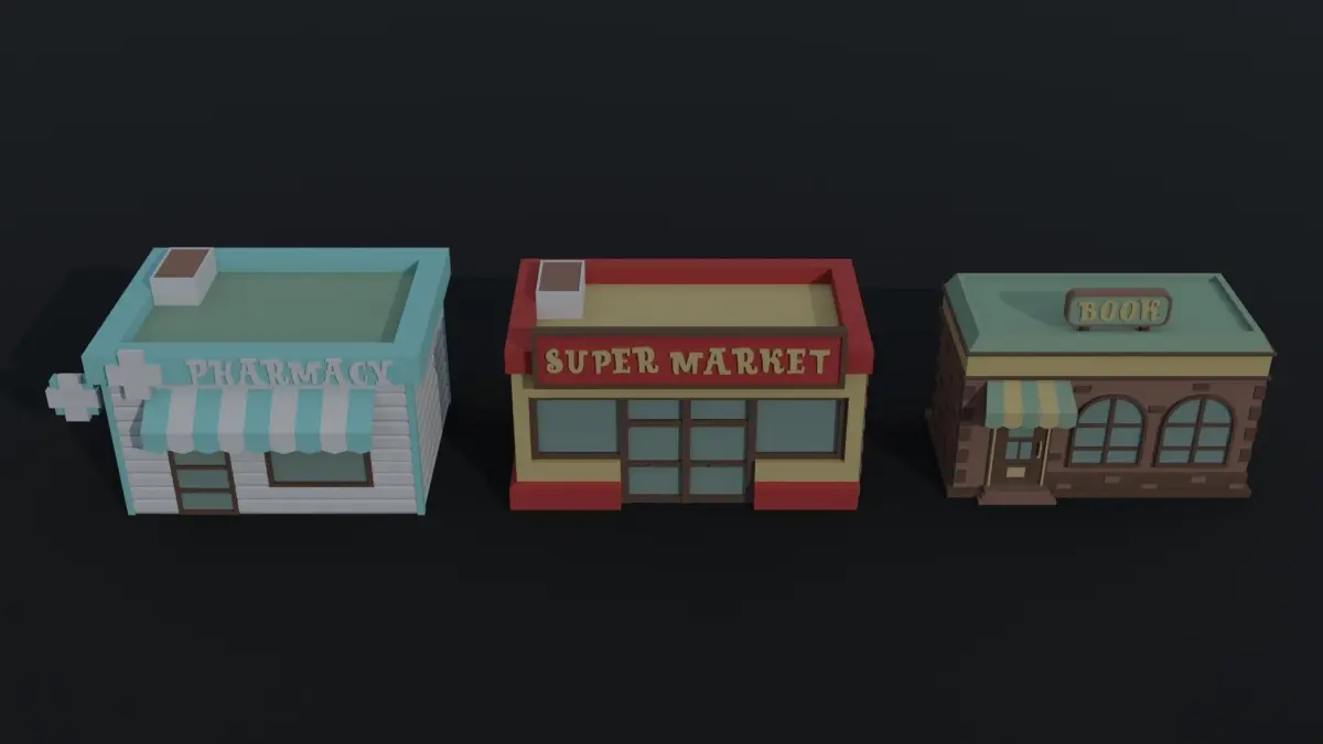 This is cartoon shops Polygonal Style(8object)