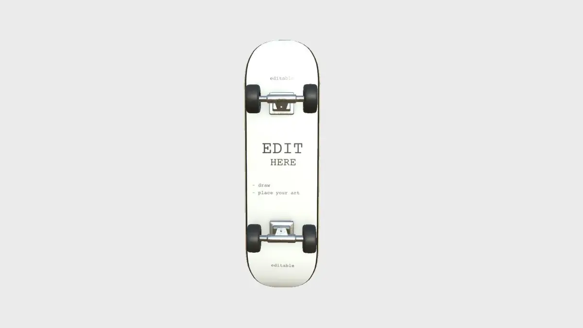 IMPORTANT: This model has an editable color map, so you can place your own art in the skate board. The editing instructions are in a .txt file with the maps.This will require a basic skill in image edition to create your own color map.