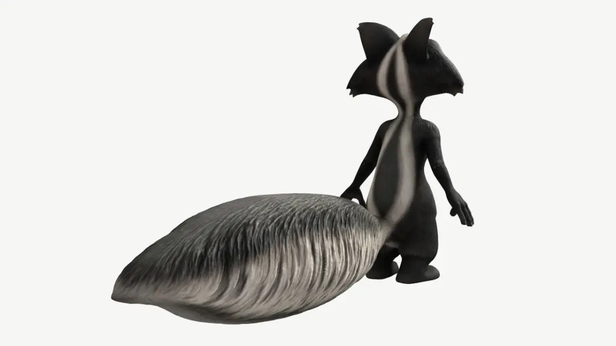 A cartoon skunk model with textures.