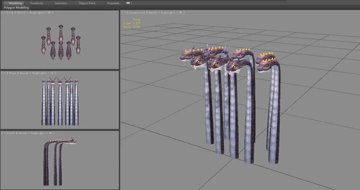 Cartoon Snake Nest - Eight Snakes Low-poly 3D model