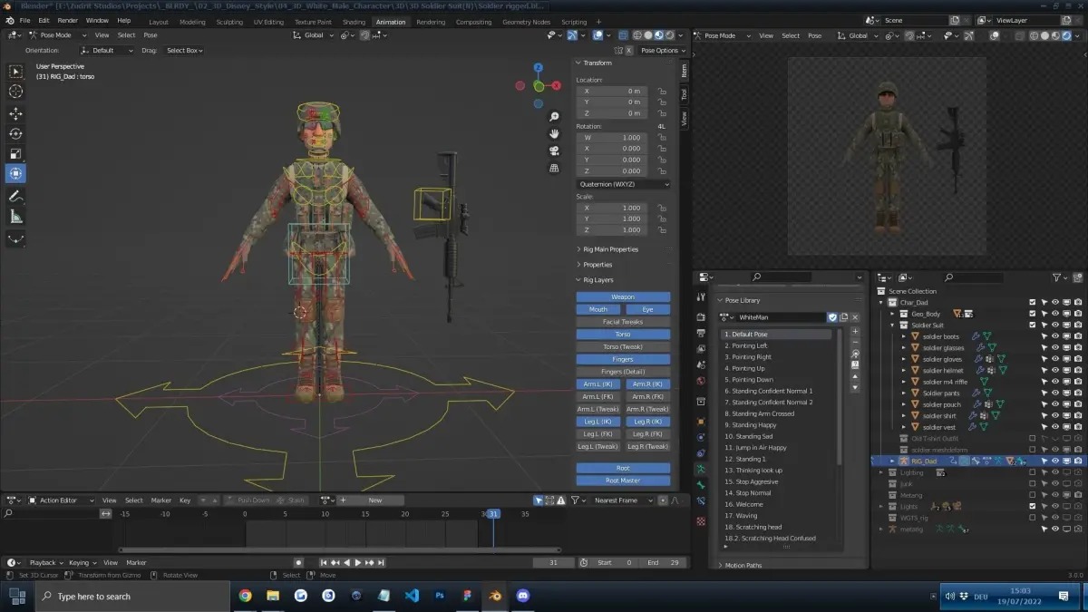 Cartoon Soldier Army Character in Disney / Pixar Style made in Blender 3.0/3.1/3.2/3.3... Light setup in Cycles & EEVEE. Ready for your Personal Websites, Movies, TV, advertising, etc.