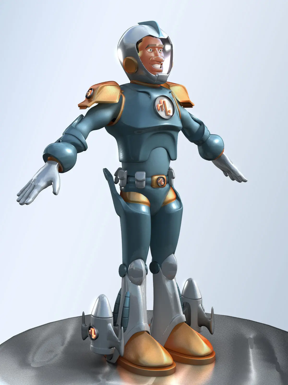 A cartoonish spaceman. Most materials and shaders are procedural, including Subsurface Scattering Skin shaders. Note that the base polygon count reflects the unsmoothed model. Created and rendered (mental ray) in 3ds max 2011.You gotta buy this, he's got rockets on his boots.