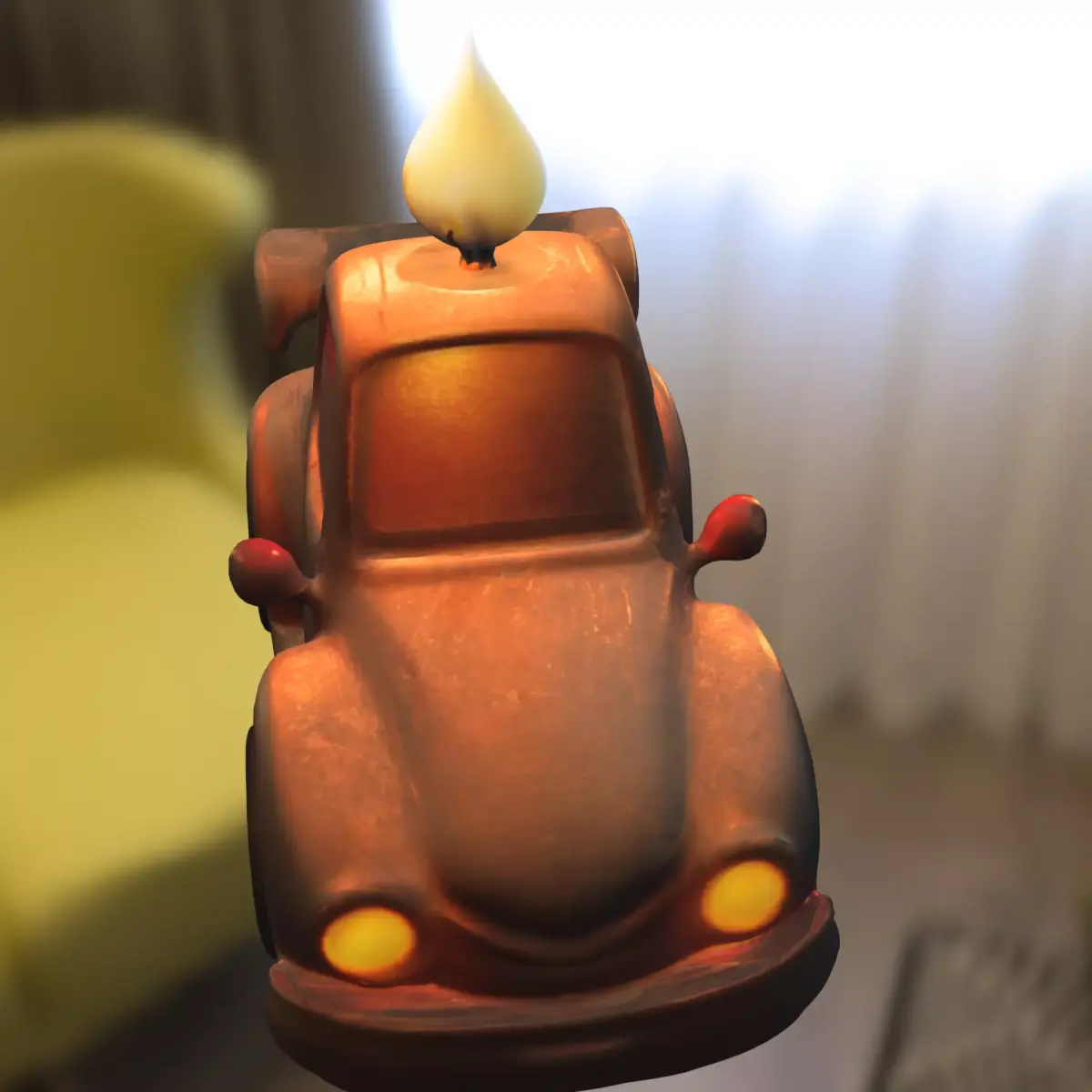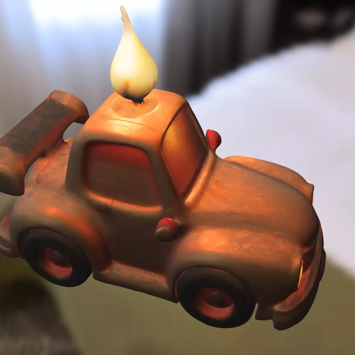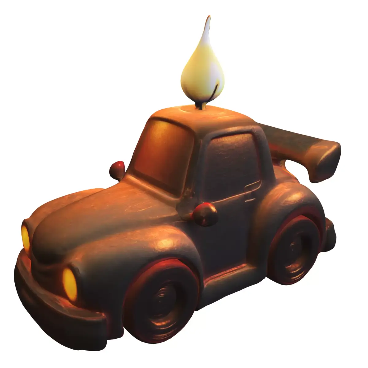 Stylized cartoon sports car with a whimsical candle flame on top, designed for use in game environments or creative projects. Perfect for popular game engines such as Unity and Unreal Engine, and suitable for titles like Mario Kart, Fortnite Creative, Roblox, or other racing and adventure-themed games. Available in multiple formats: OBJ, FBX, STL, DAE, PLY, GLB, and Blender. This asset is game-ready and also optimized for 3D printing, making it ideal for creating collectible figurines, tabletop game props, or display pieces.