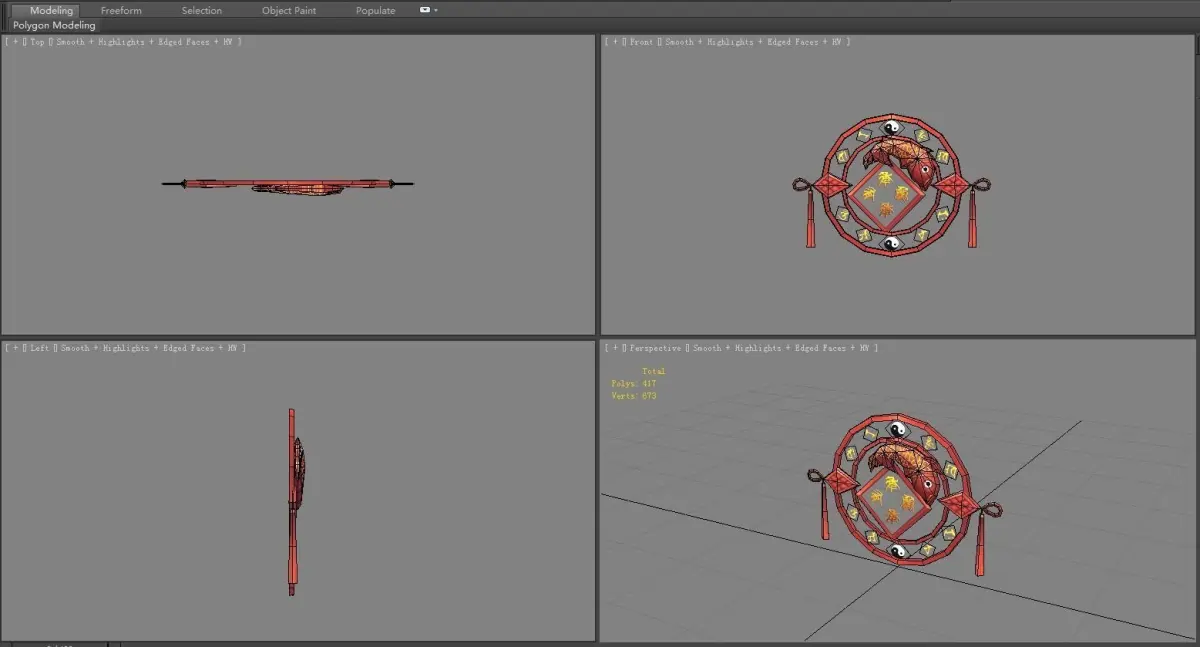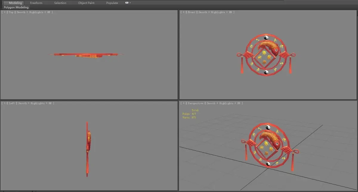Cartoon Spring Festival Ornaments - Chinese New Year Stickers Low-poly 3D model