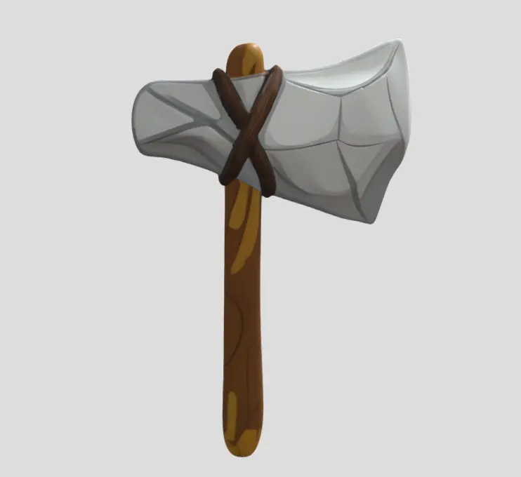 Stylized 3D model of a cartoon stone axe designed for casual games, animations, and fantasy environments. Includes clean topology and PBR textures for real-time rendering or offline cinematic use.