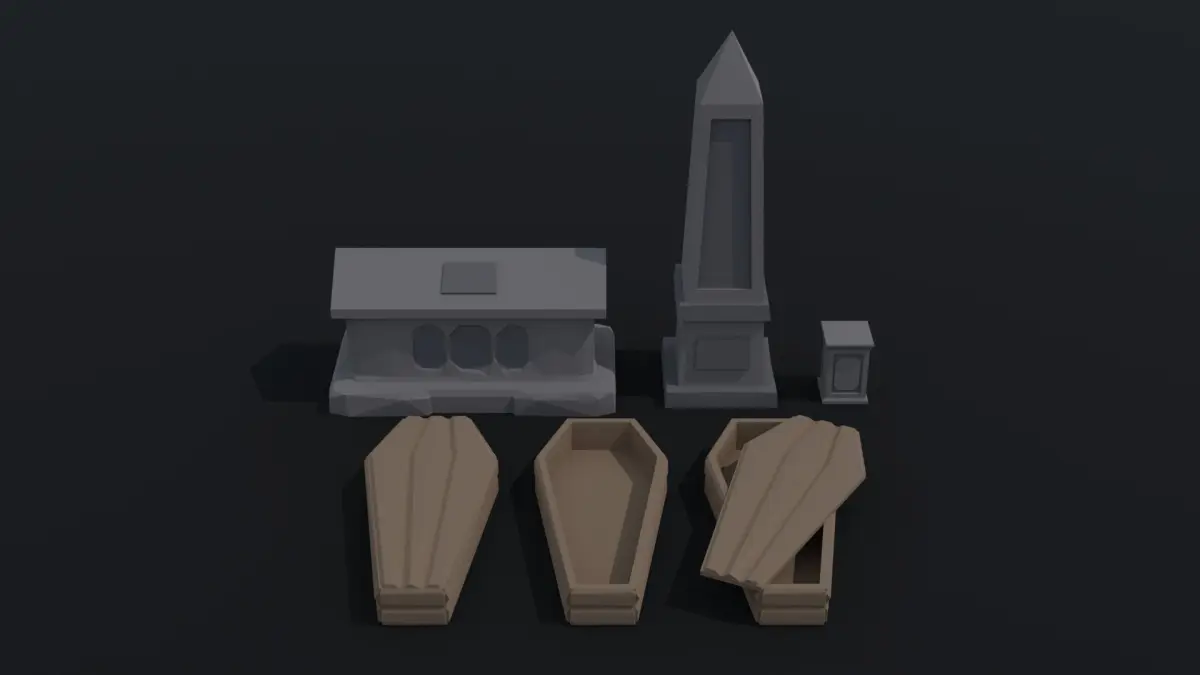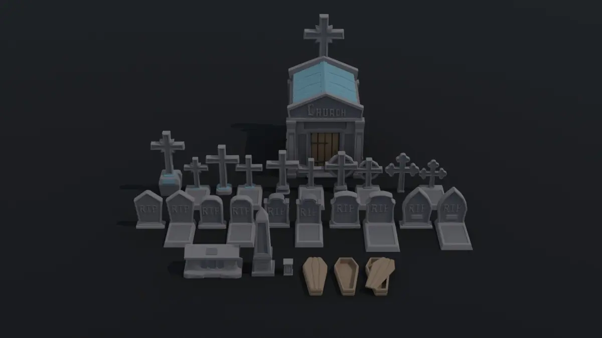 This is cartoon stone cemetery Polygonal Style(27 object)