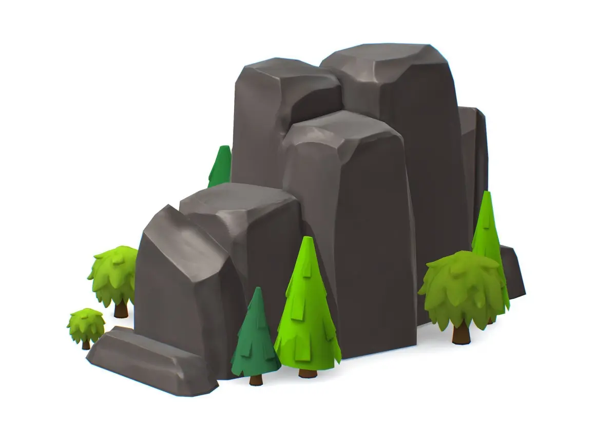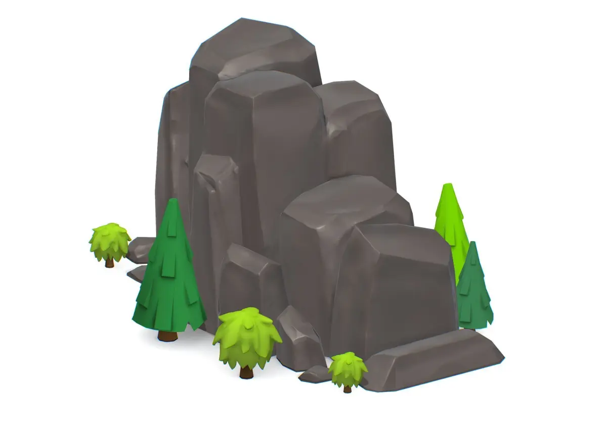 HomeCatalogCartoon Stone Cliff and Green Trees Low-poly 3D model