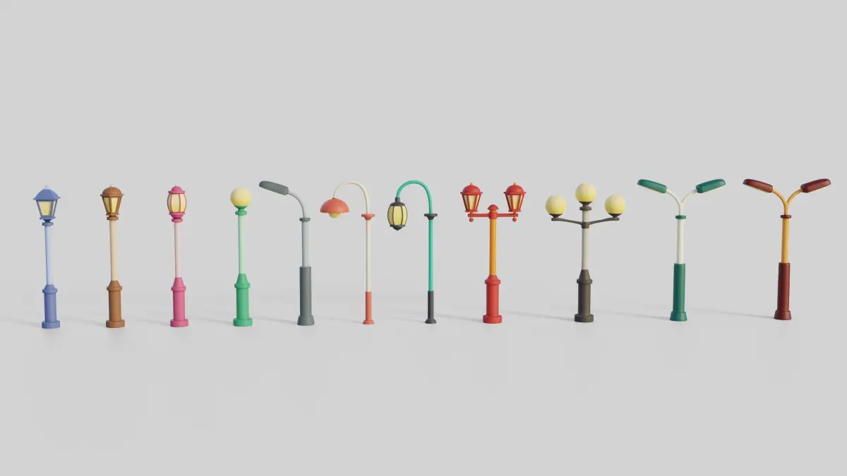 Cartoon Street Lights Collection 3D Models