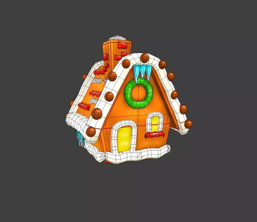 Cartoon Style Gingerbread House 3D low-poly game model.
