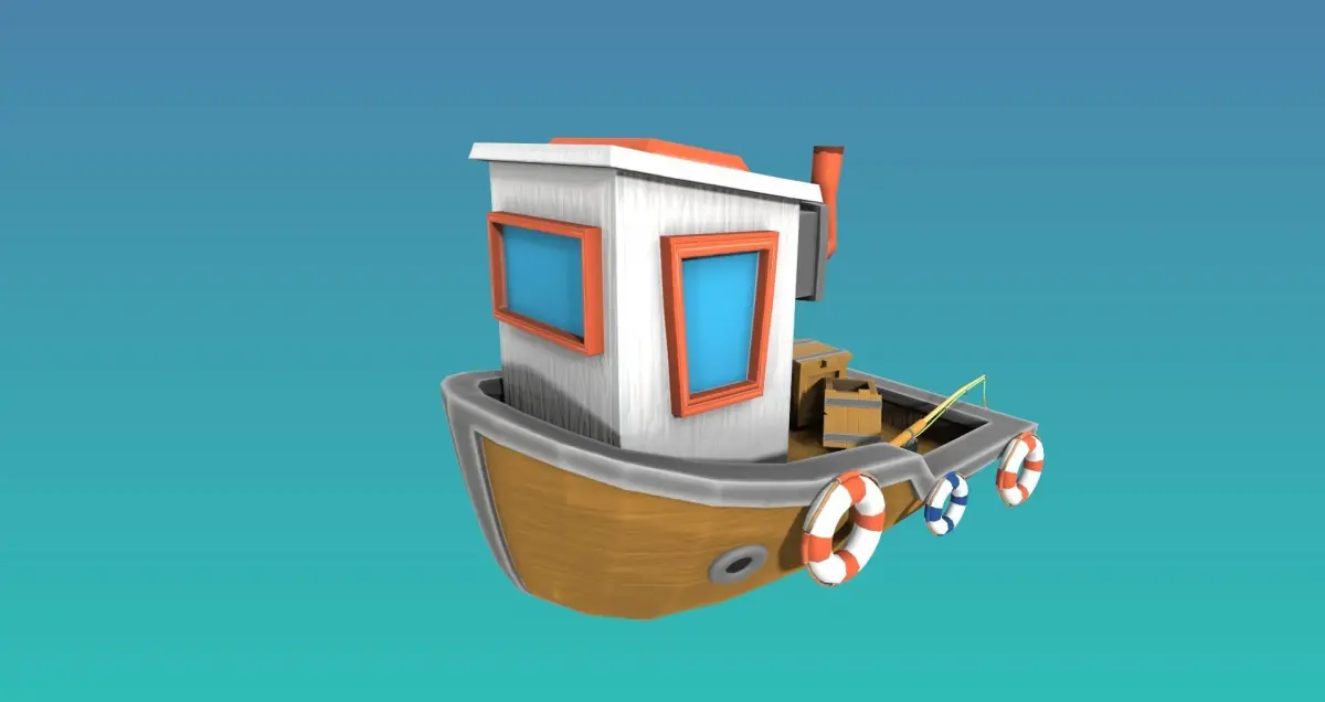 Cartoon style low poly Fishing boat Low-poly 3D model