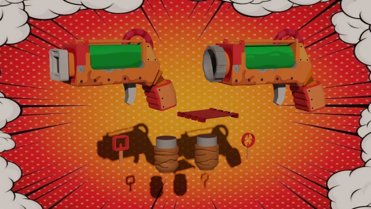 Cartoon-style hand-drawn pistols. They can be suitable for your game, cartoon, or animation. Additionally, these pistols have removable parts, so you can mix and match different components as you please.