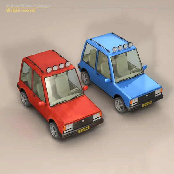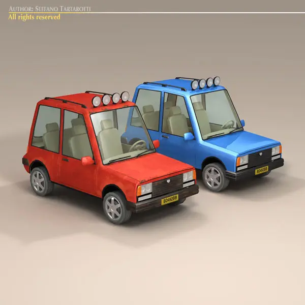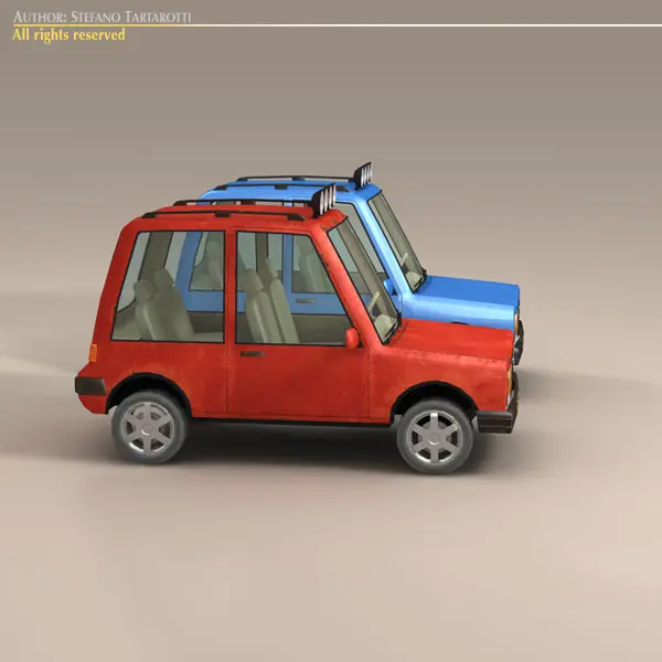Cartoon Suv with new and old rusted texture. Only cinema4d R10 has materials, textures and lights. Other formats zip files have textures enclosed. Polygons 9927 Vertices 10795 If you like the model please rate it.