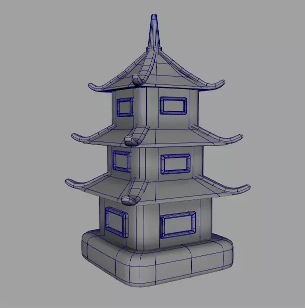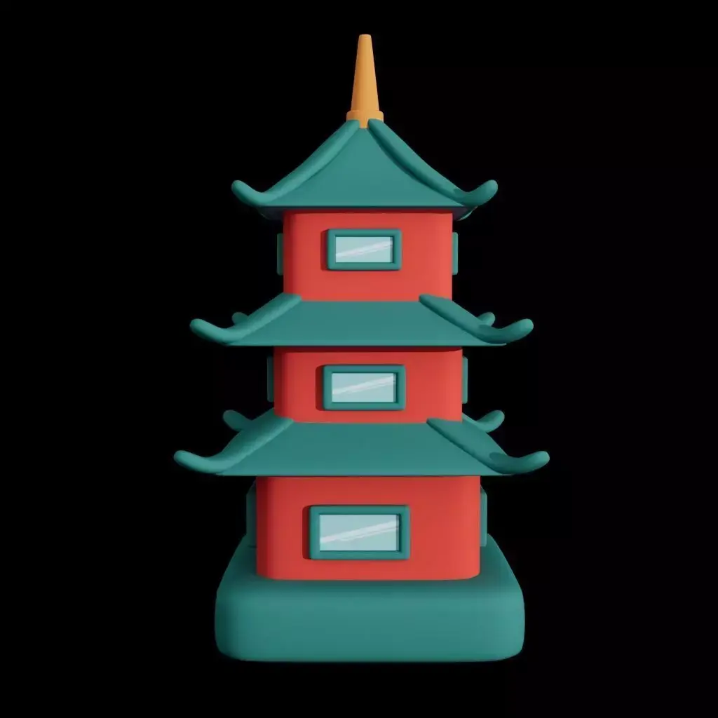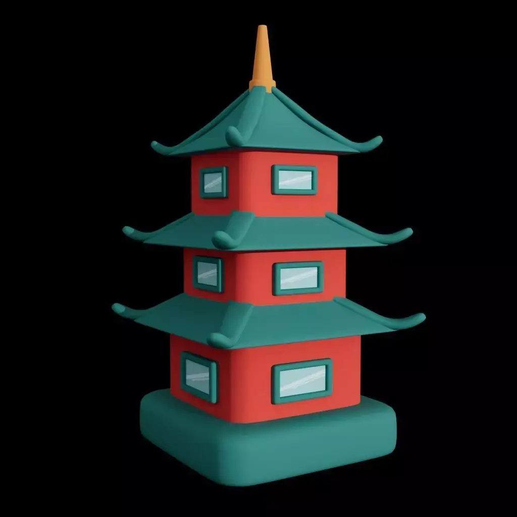 A stylized Japanese pagoda temple modeled in a charming cartoon style, perfect for Tokyo dioramas, anime environments, historical Japan games, and isometric city scenes. This asset combines soft shapes with clean geometry to create an attractive, game-ready building.