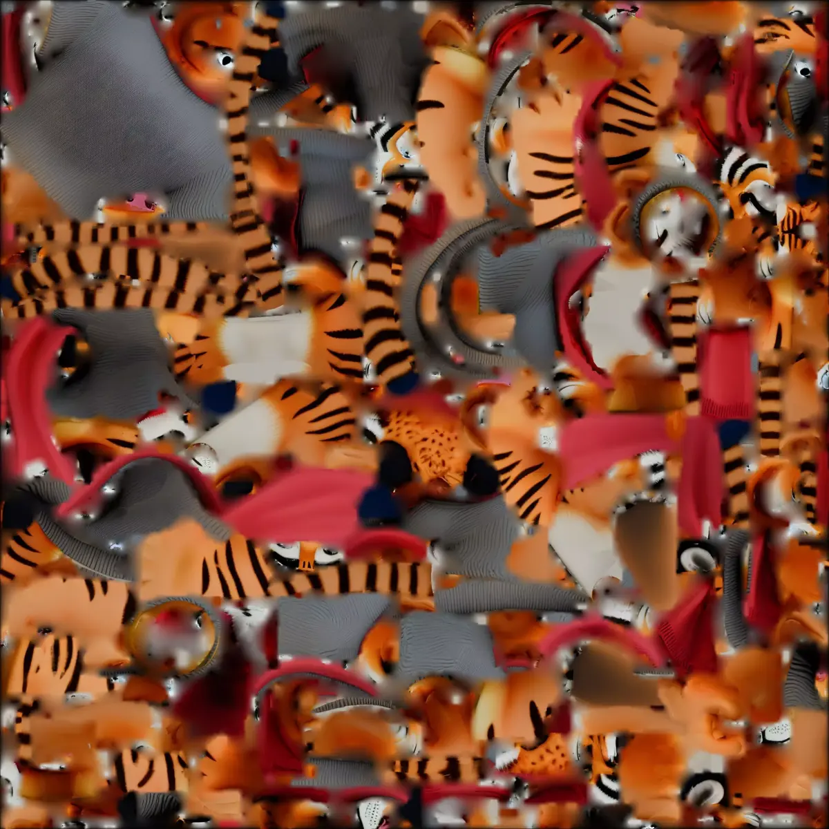 TagsTiger Character Cartoon Muscular Winter Cozy Sweater Scarf Orange Black Knit Prop GameAsset Seasonal Collectible Stylized Furry Mascot Stripes Hero
