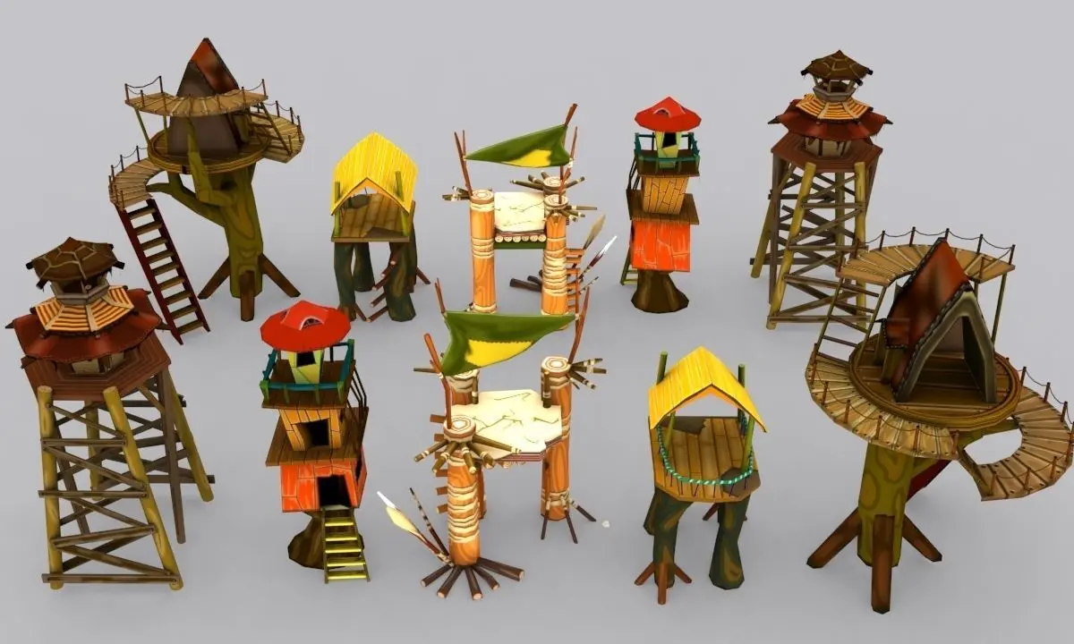 This pack contains 5 prefabs for cartoon Tower Defense or other , Includes :