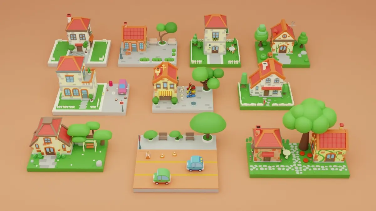 The pack allows you to build any Town exterior project to your liking. 10 islands included! You can scale the objects/models to the size you need.