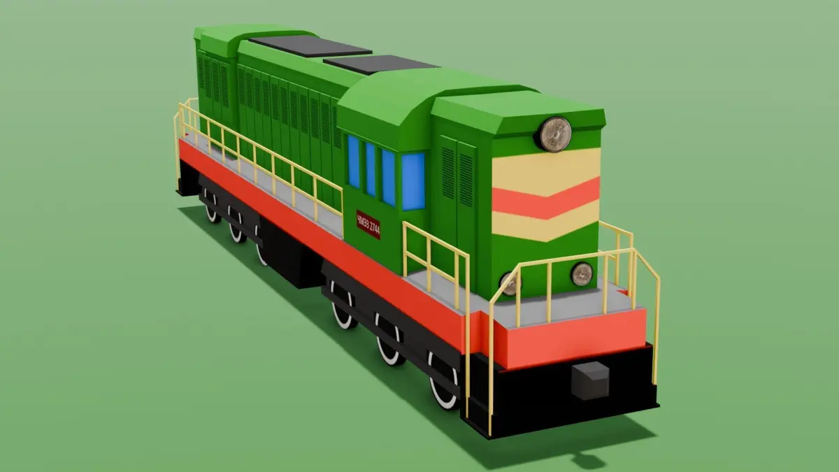 Model Type: Cartoon Train (Low Poly)Media Type: Digital Asset - 3D ModelGeometry:Polygon Count: 2,225 polygonsVertex Count: 1,487 verticesThe geometry of this model is constructed using a combination of quads and triangles, optimized for efficient rendering while maintaining visual appeal.Textures and Materials: