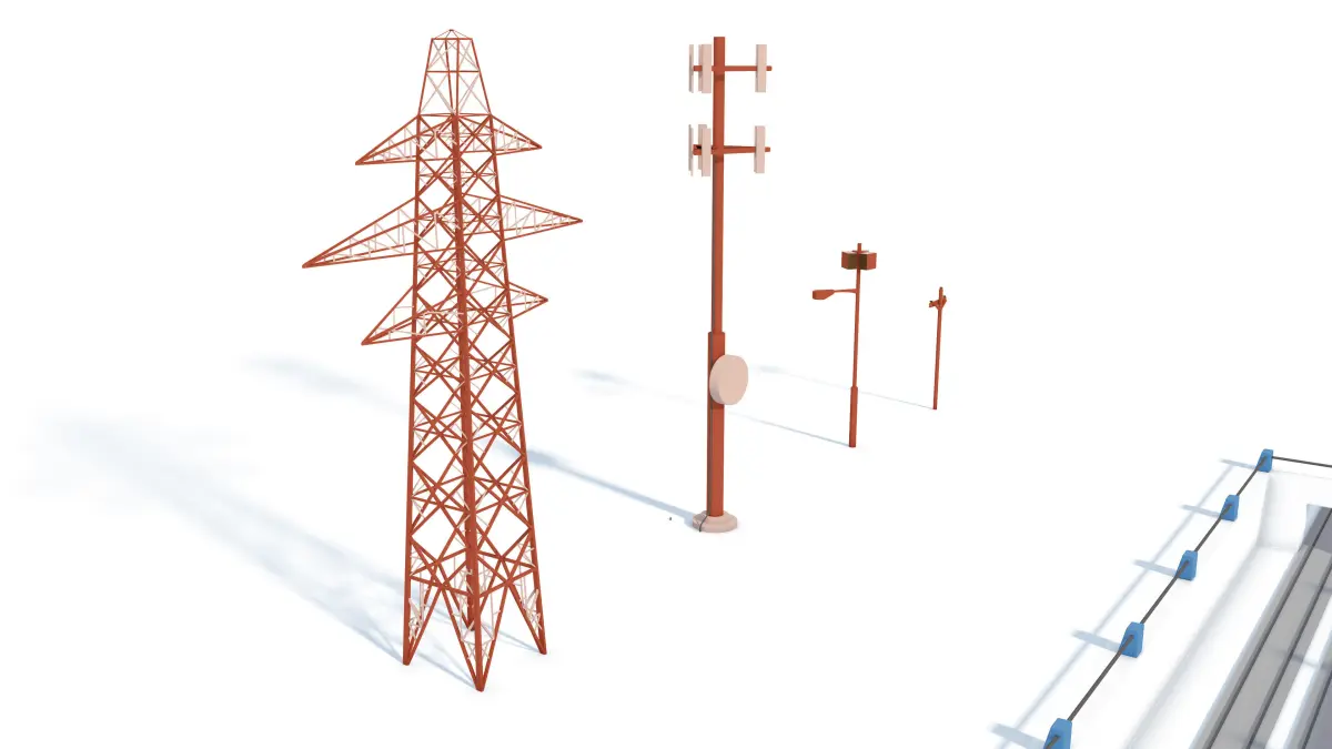 The above ground system also includes easily modified rails, high voltage lines, electrical line poles, cantilever supports, tunnels, an electrical tower, an electrical pole, and a small depot.The underground system includes a tunnel inset piece, guard rails, easily modified tracks with ninety degree bends, several building model designs, a wifi tower, and a 5G smart pole.