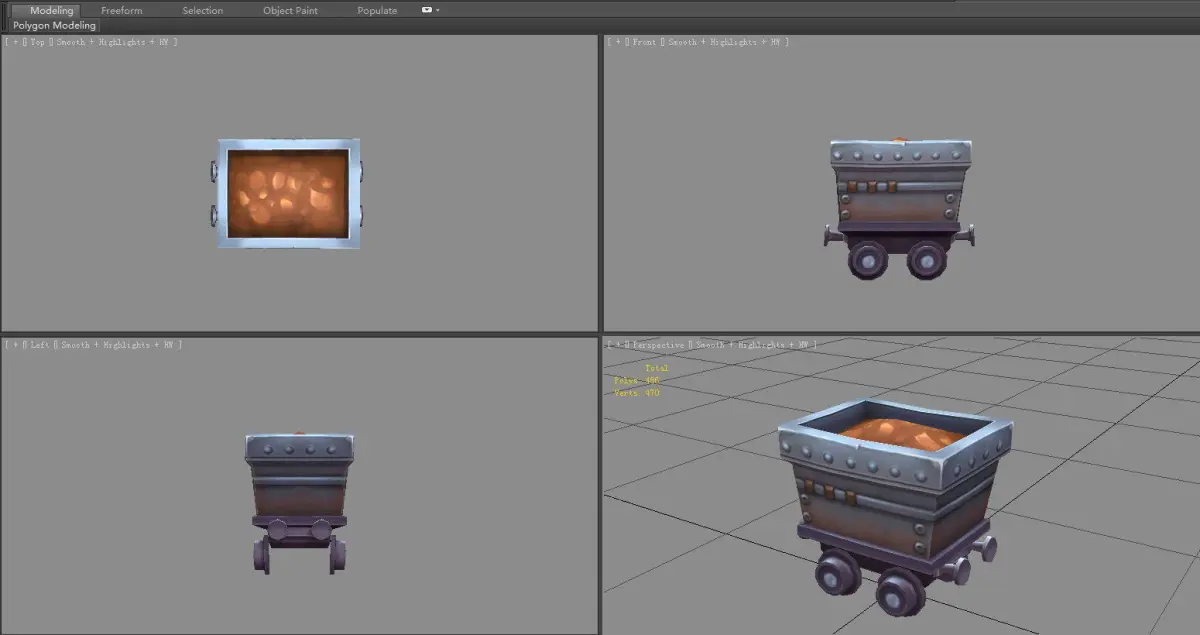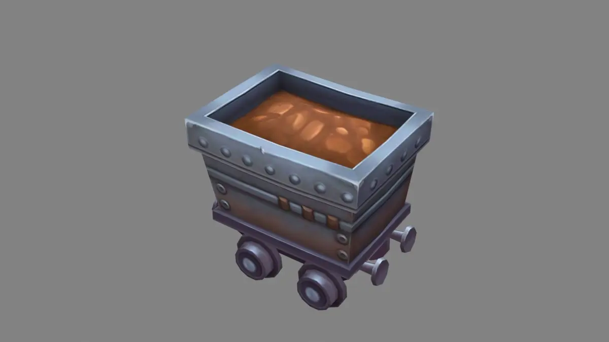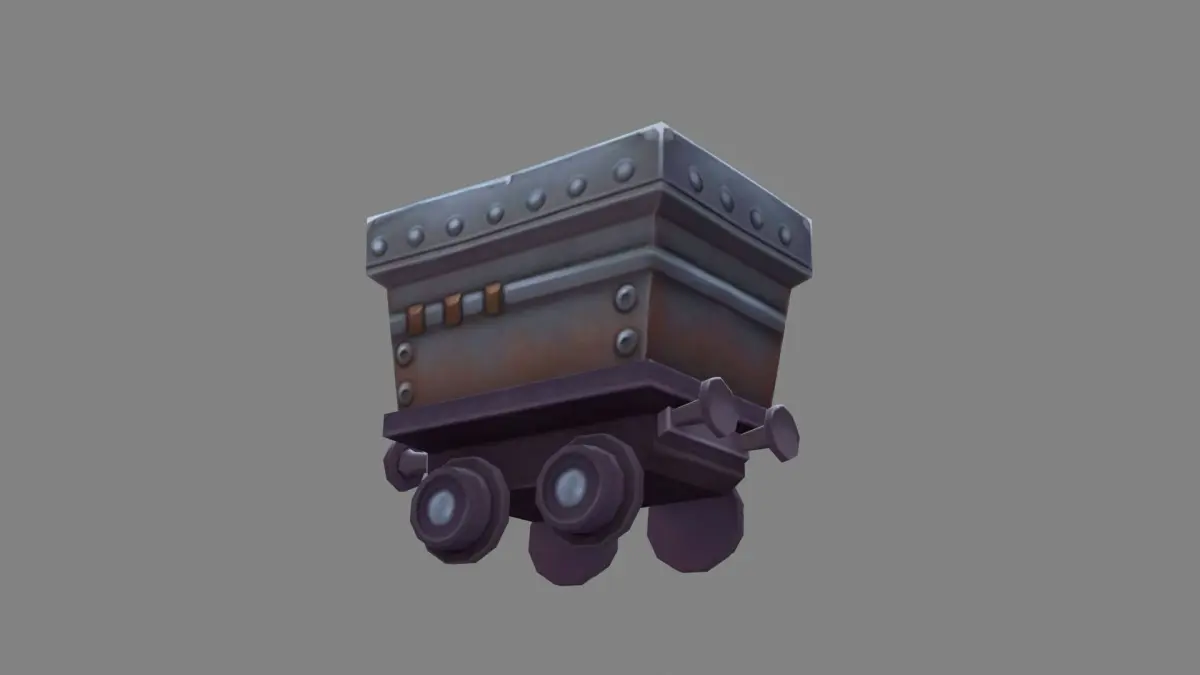 Cartoon tramcar - minecart - mine car - mine truck Low-poly 3D model