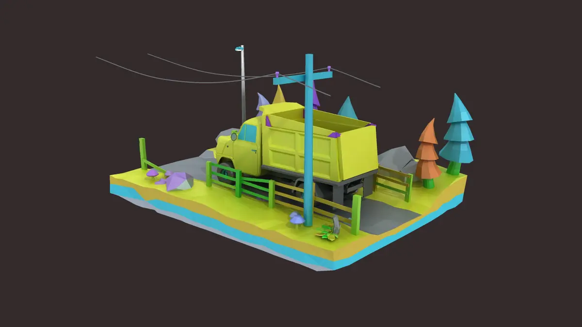Cartoon trucks LowPoly transporters Origami cars generic 3D model