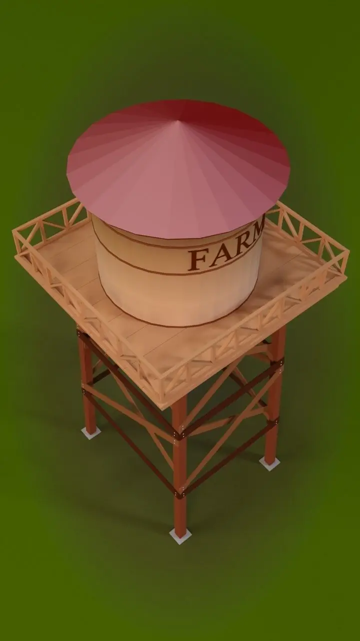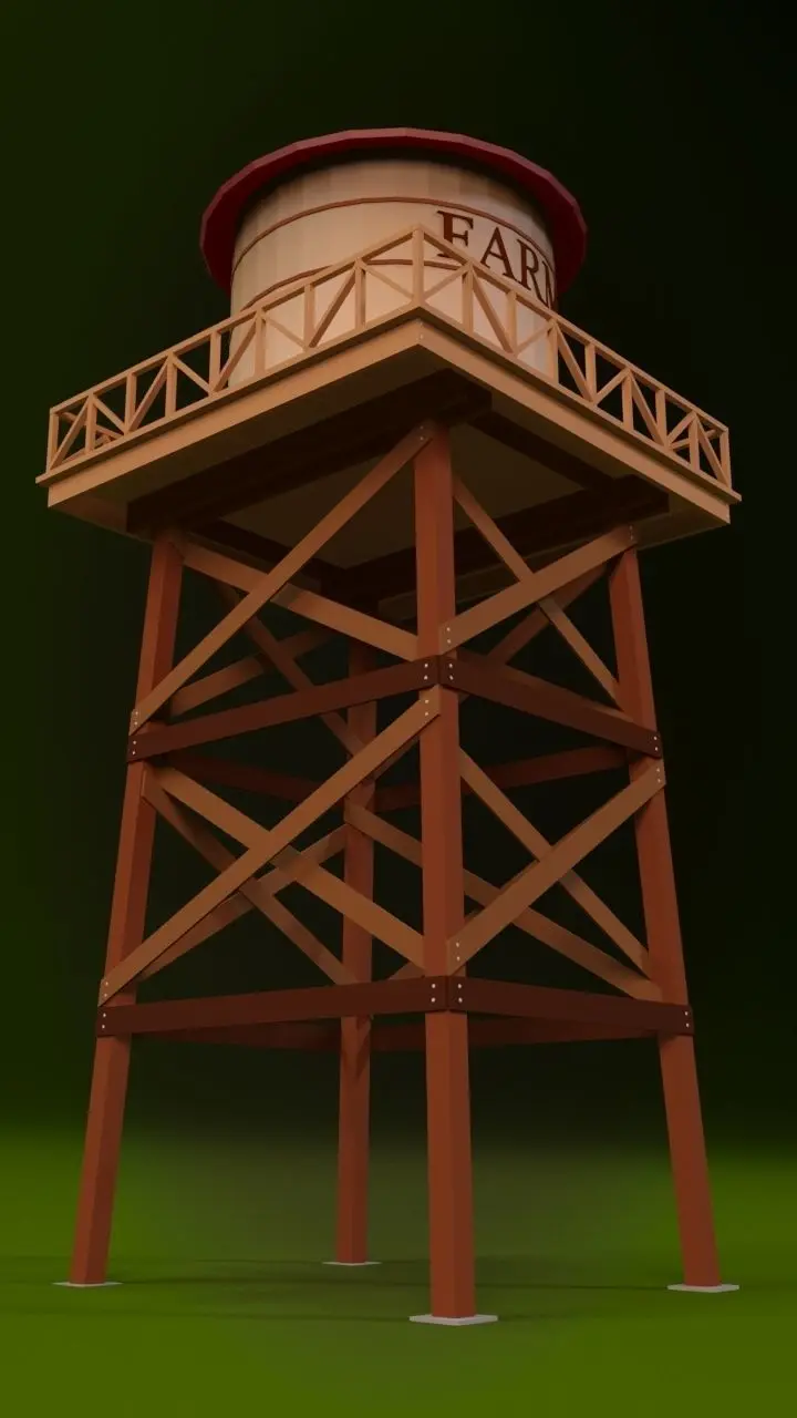 Cartoon Water Tower with structure reminding old and more pictoresc farms from United States looking more rustic.