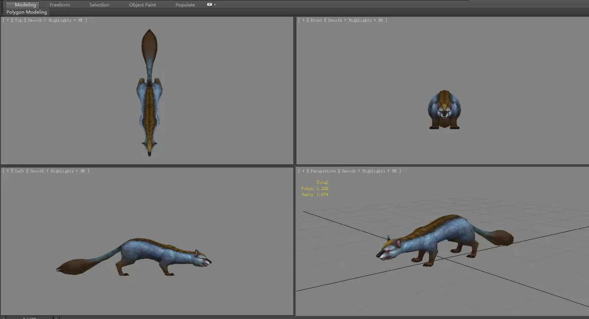 Cartoon weasel Low-poly 3D model