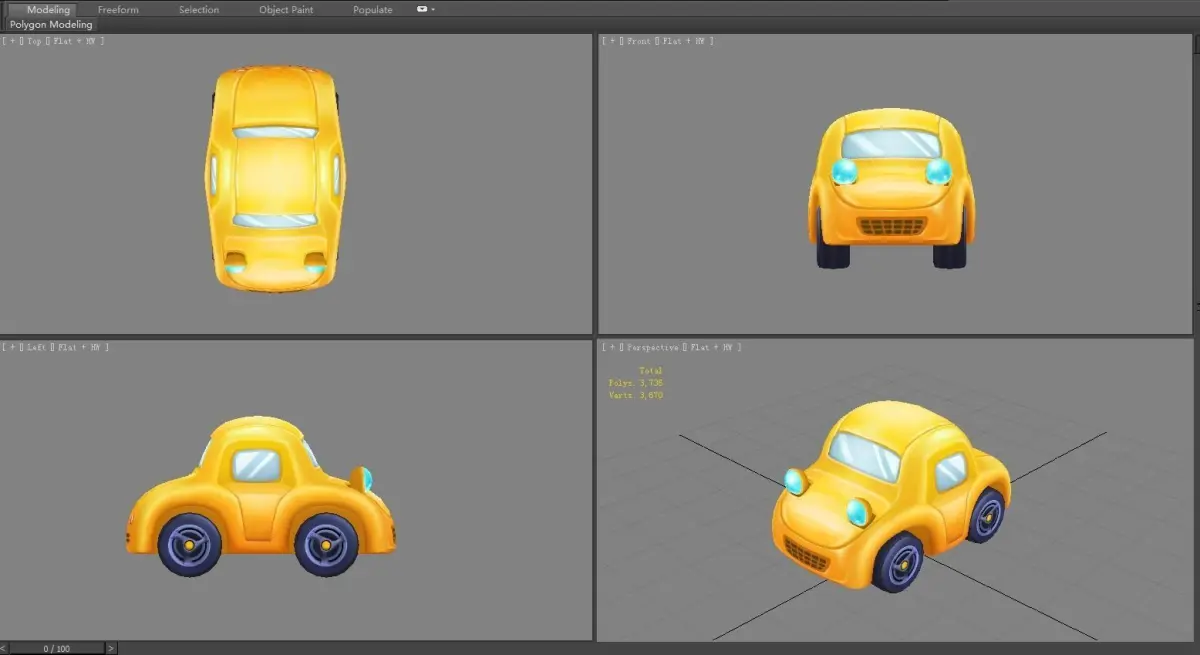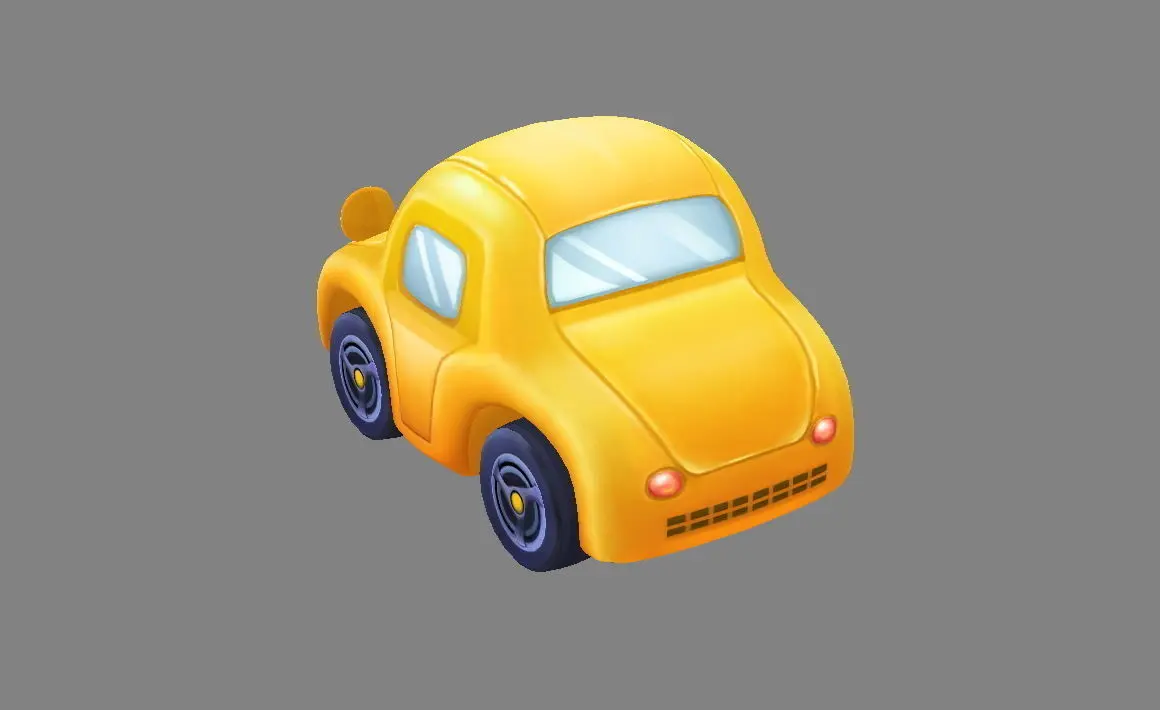 Cartoon yellow toy car Low-poly 3D model