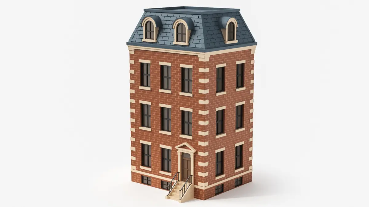 Cartoonish Classic Apartment Building Low Poly 3D Model Bundle.