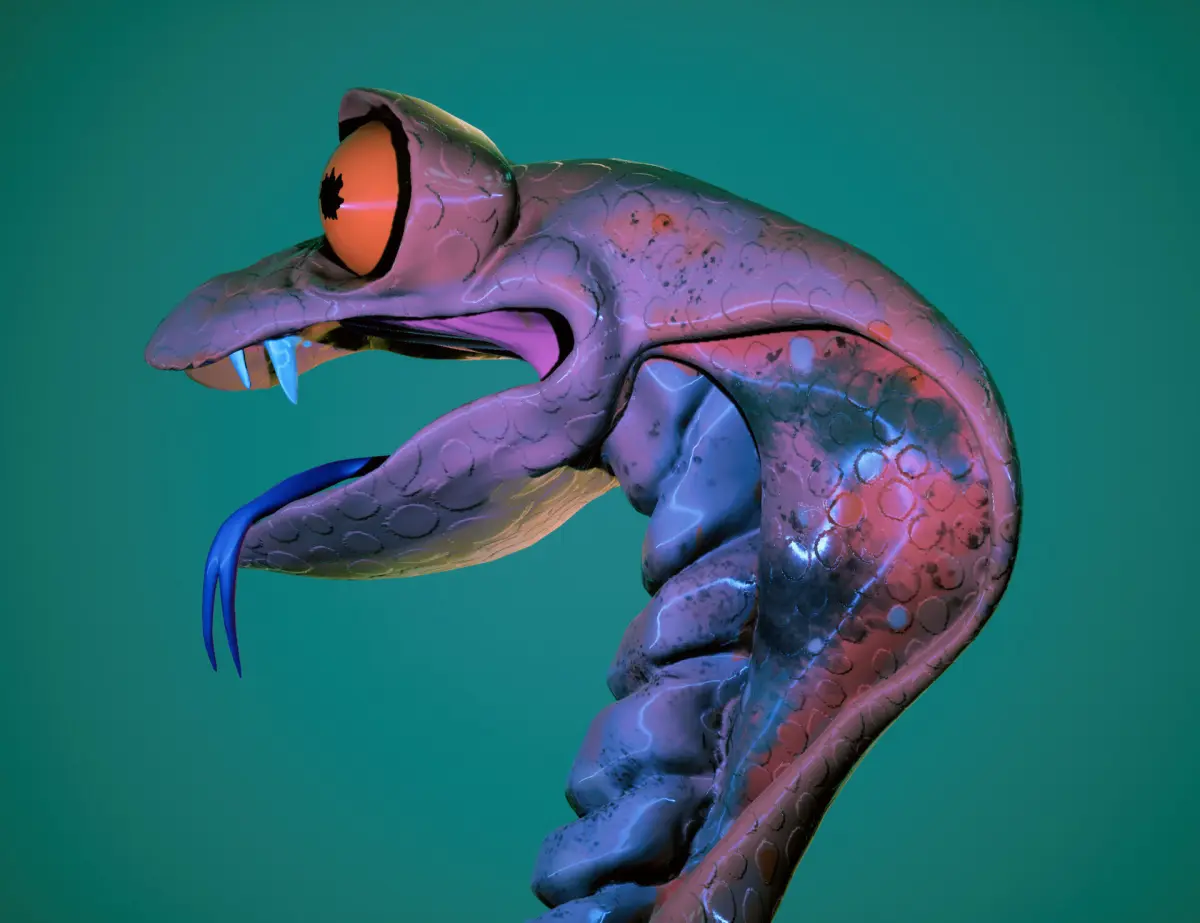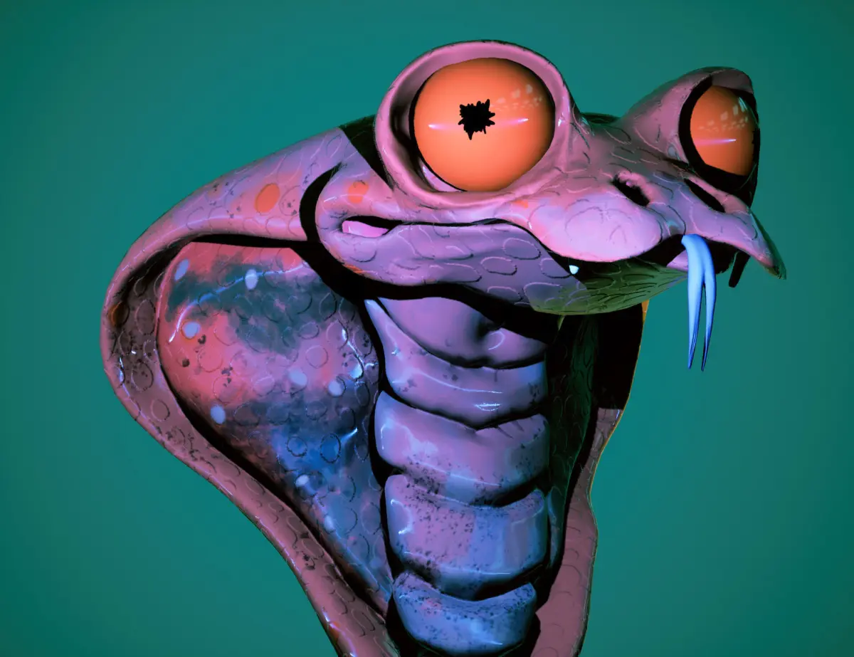Cartoonish Cobra Rigged and Animated Low-poly 3D model