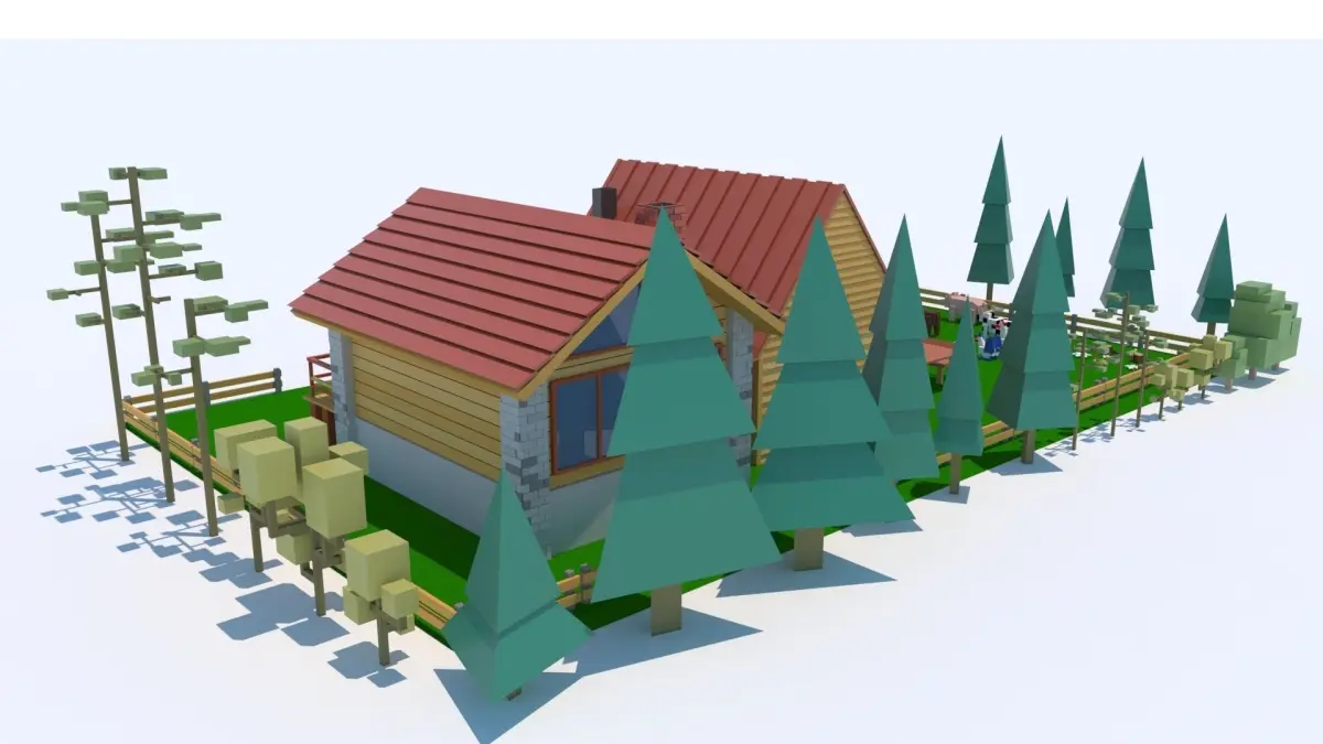 HomeCatalogCartoons Houses and Animals low-poly model Low-poly 3D model