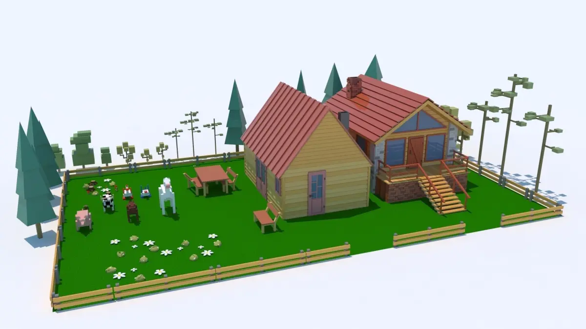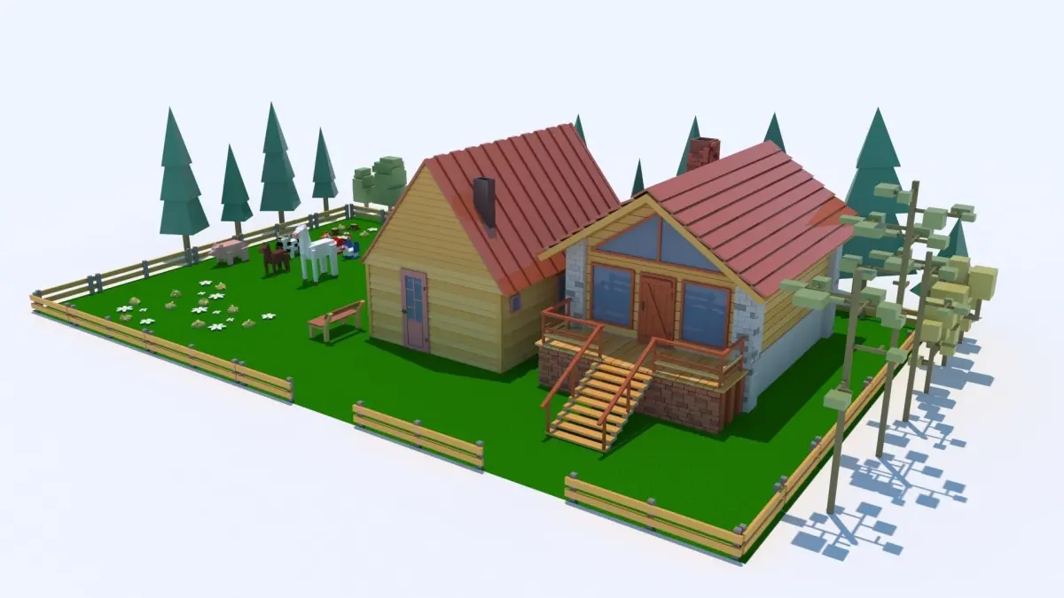 Cartoons Houses and Animals low-poly 3d models ready for Virtual Reality (VR), Augmented Reality (AR), games and other real-time apps.