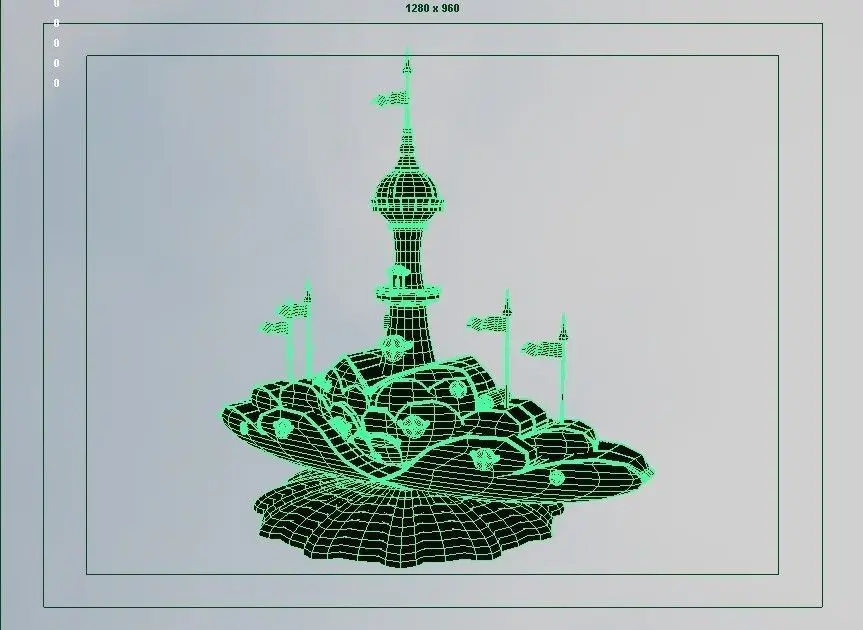 Cartoony Stylized Love Castle with windmill, fountain & bridges