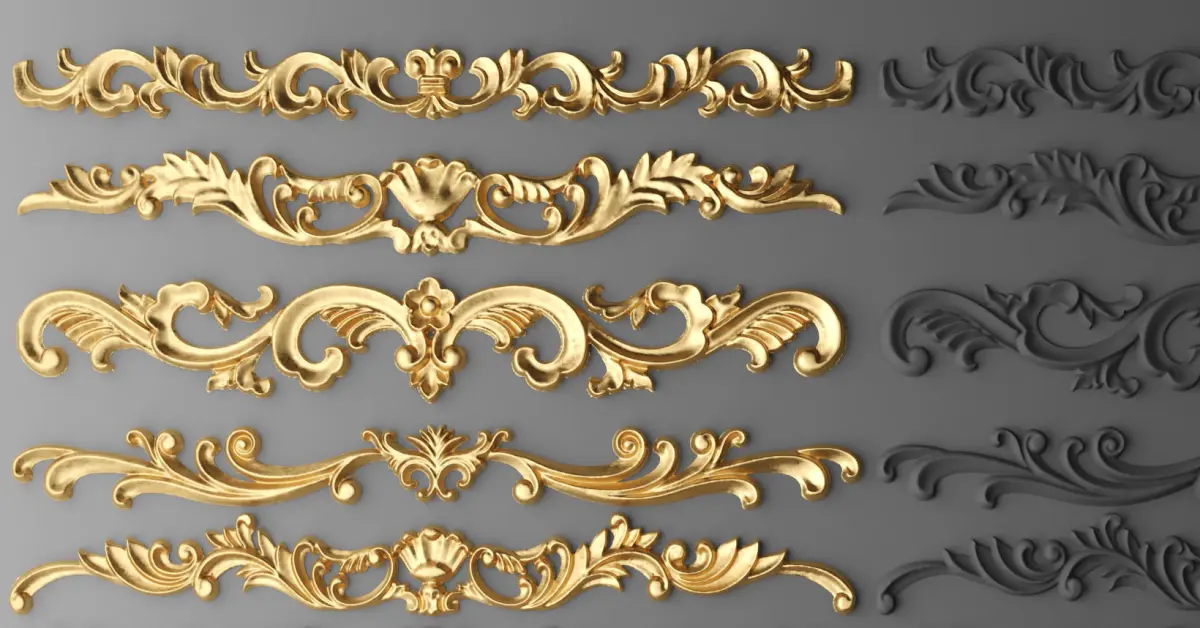 Cartouches SET 3D of gold ornate ornaments 3D model