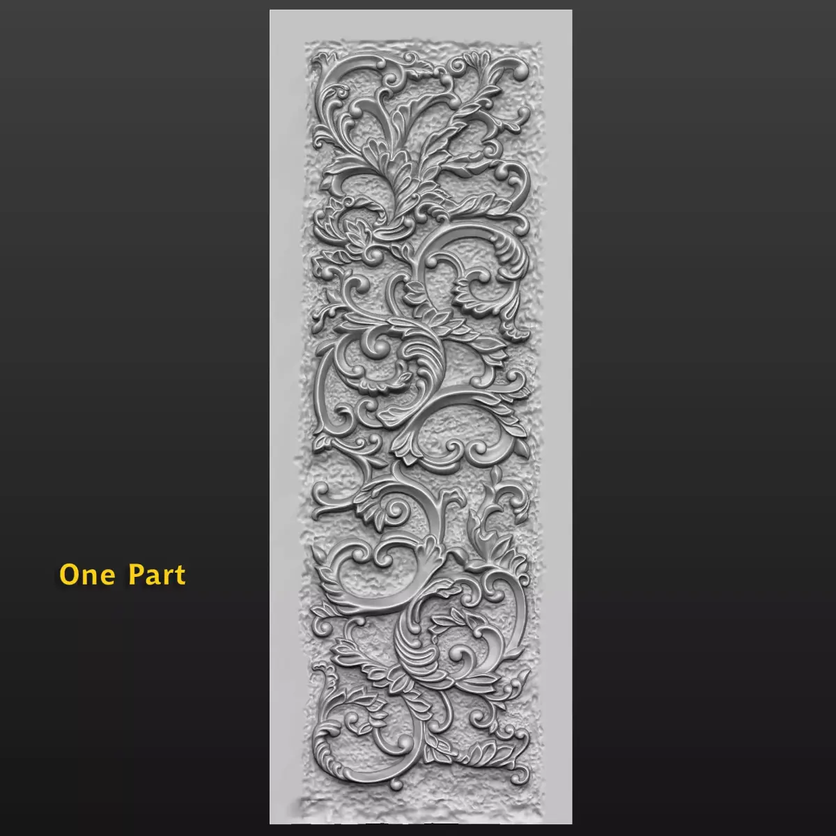 The carved portion of the panel is made entirely of triangles for compatibility and efficiency in production. The outer frame has a simple shape and is included for demonstration purposes only — the focus is on the central carved design.