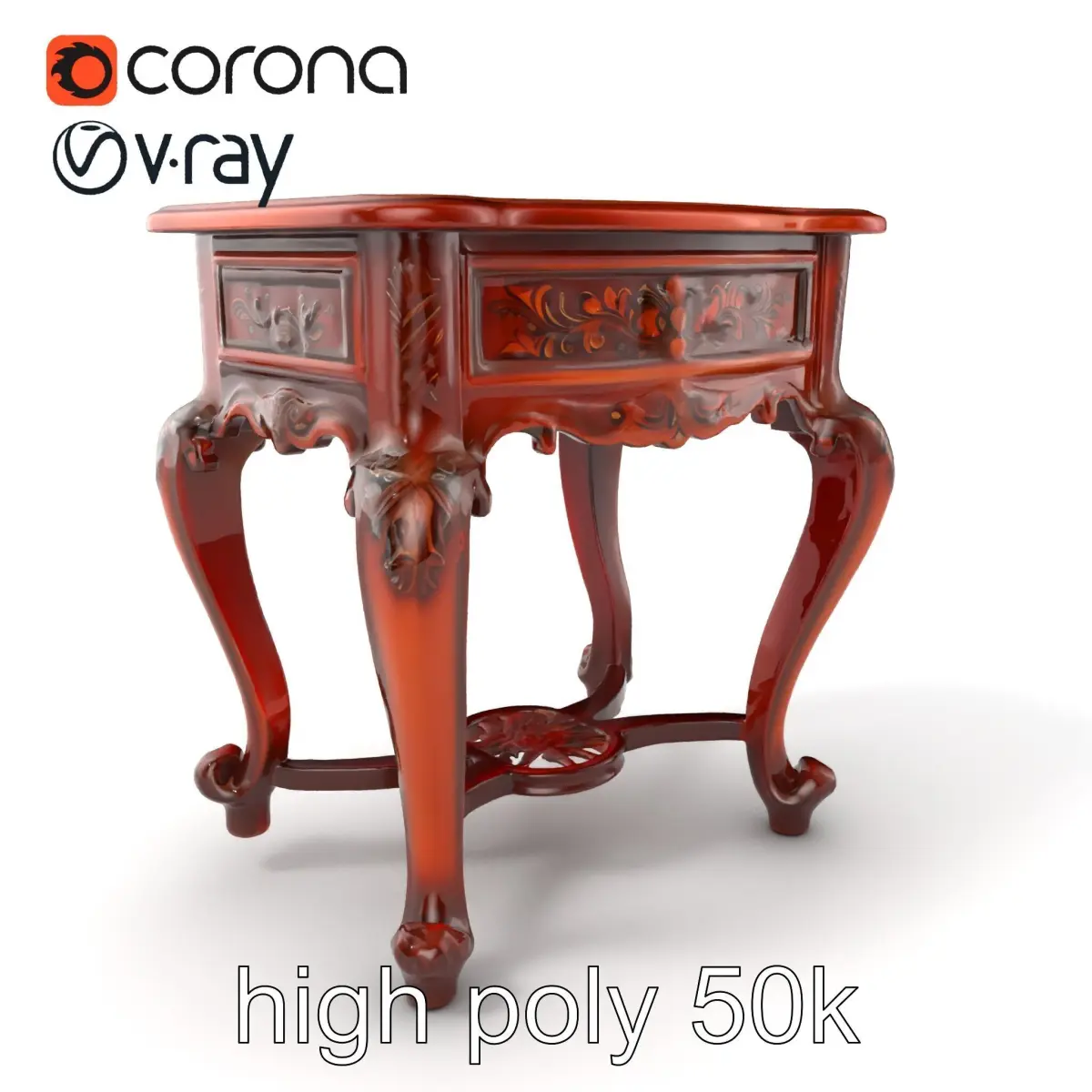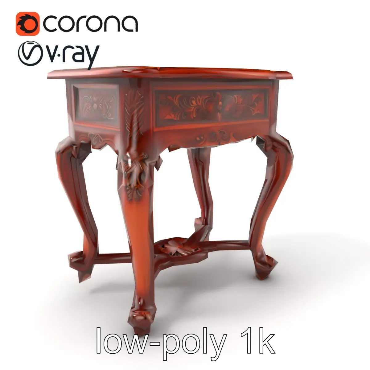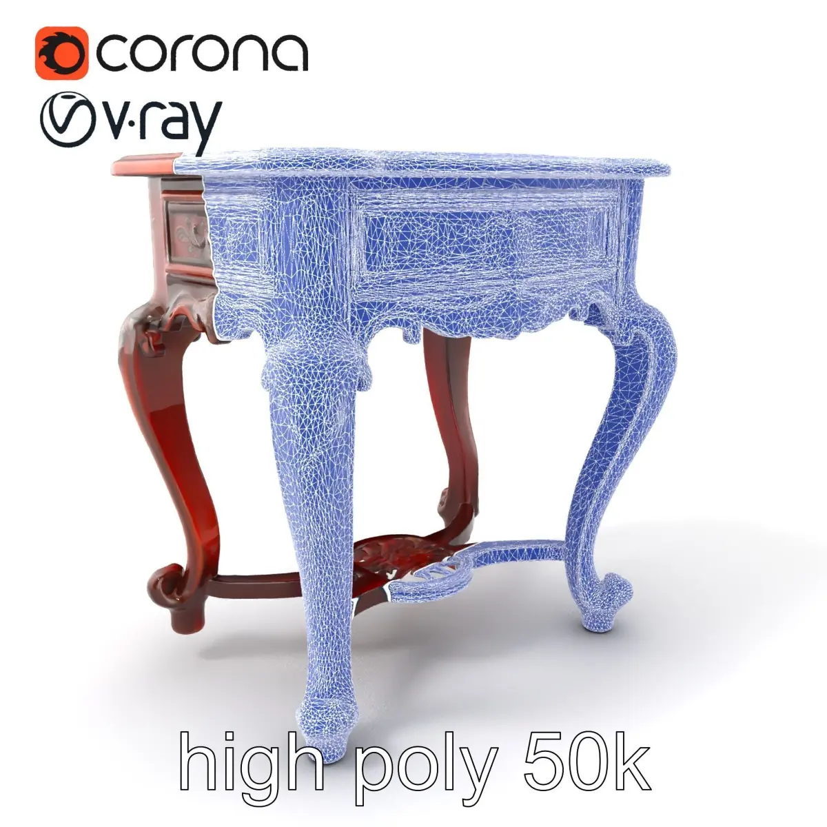 Each model has 3 levels of detail: low-poly, middle-poly, and high-poly, which allows for use in production rendering (such as 3ds max, Maya, Cinema4D, Blender, Vray/Corona/Cycles, and all others), game engines (Unity and Unreal compatible), and interactive presentations, providing a choice of detail based on the LOD System principle. This carved mahogany side table model is ideal for interior design visualizations, virtual staging, and period setting games. The model's textures are PBR, Diffuse, NormalMap, and reflection/roughness/metallic, which are suitable for any modern rendering engine. All models are accurately unwrapped and have no overlapping UVs. All textures are 4096x4096 in size. If you liked this model, please like and leave a comment!