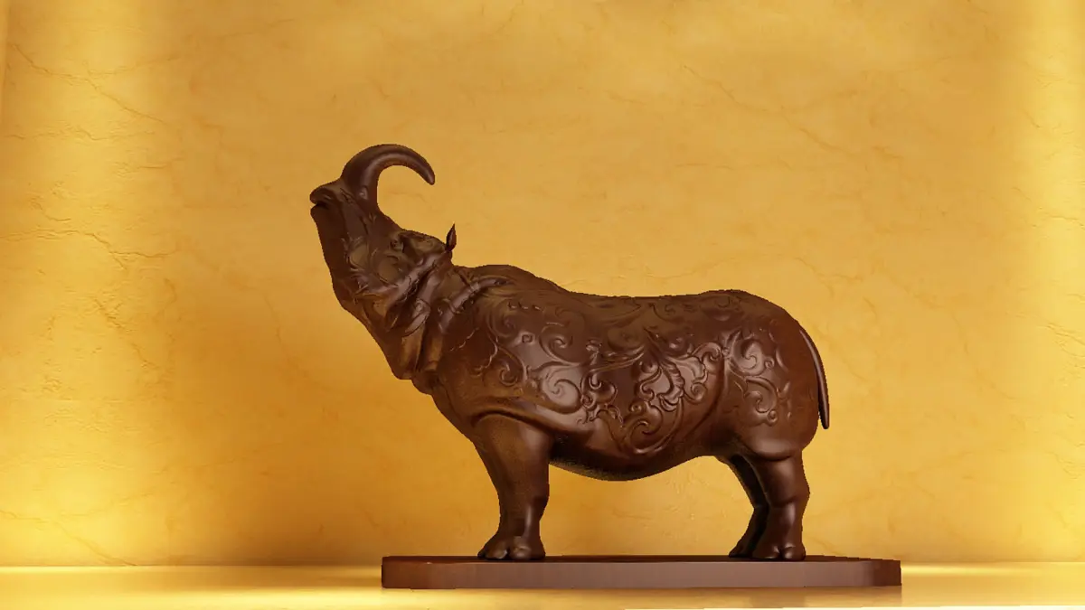 Carved Rhinoceros ornaments wood carving crafts 3D model