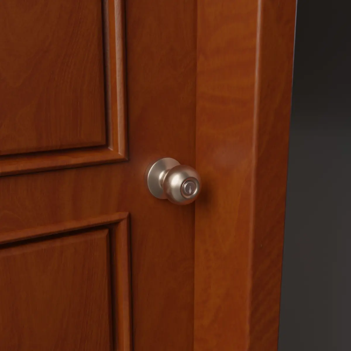 It's a simple and lightweight door, it's a standard door, It comes with both 6,8' x 3' or ~ 2,1 x 0,90 meters (scalable to make 8' entrance doors) and 7' x 3' for narrower inside use of the door, if that suits your need. It was made in blender, so there you have the original file, with the model. It comes with a detailed key lock and hinges, so you can easily rig and animate this door. It is as lightweight as you can get with this level of detail. It's 14k vertices, but you can get as low as 9k or lower if you remove all modifiers and limited dissolve some parts. Textures are easily changeable, I strongly recommend you to use Blender because you can benefit from blender nodes and easily change the wood color in the Shader Editor.