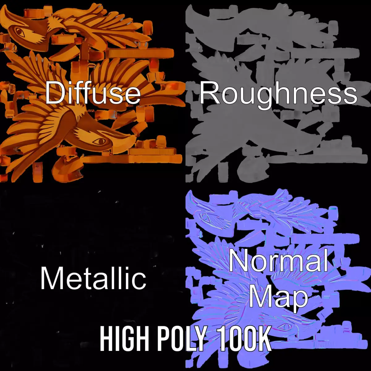 This elegantly detailed carved wooden eagle model captures the essence of natural artistry, perfect for decorative and educational applications. Each model has 3 levels of detail: low-poly(1000 triangles for mobile), middle-poly(10 000 triangles for environment), and high-poly(100 000 triangles), which allows for the use of this model in production rendering(such as 3ds max, Maya, Cinema4d, Blender, Vray/Corona/Cycles and all other), game engines(Unity and Unreal compatible), and interactive presentations, providing a choice of detail based on the LOD System principle. The wooden eagle can be utilized in interior design, themed exhibitions, or virtual museum displays. The model's textures are PBR, Diffuse, NormalMap, and reflection/roughness/metallic, which are suitable for any modern rendering engine. All models accurately unwrapped and have no overlapping UV. All textures are 4096*4096 in size. If you enjoy this model, please like and leave a comment.