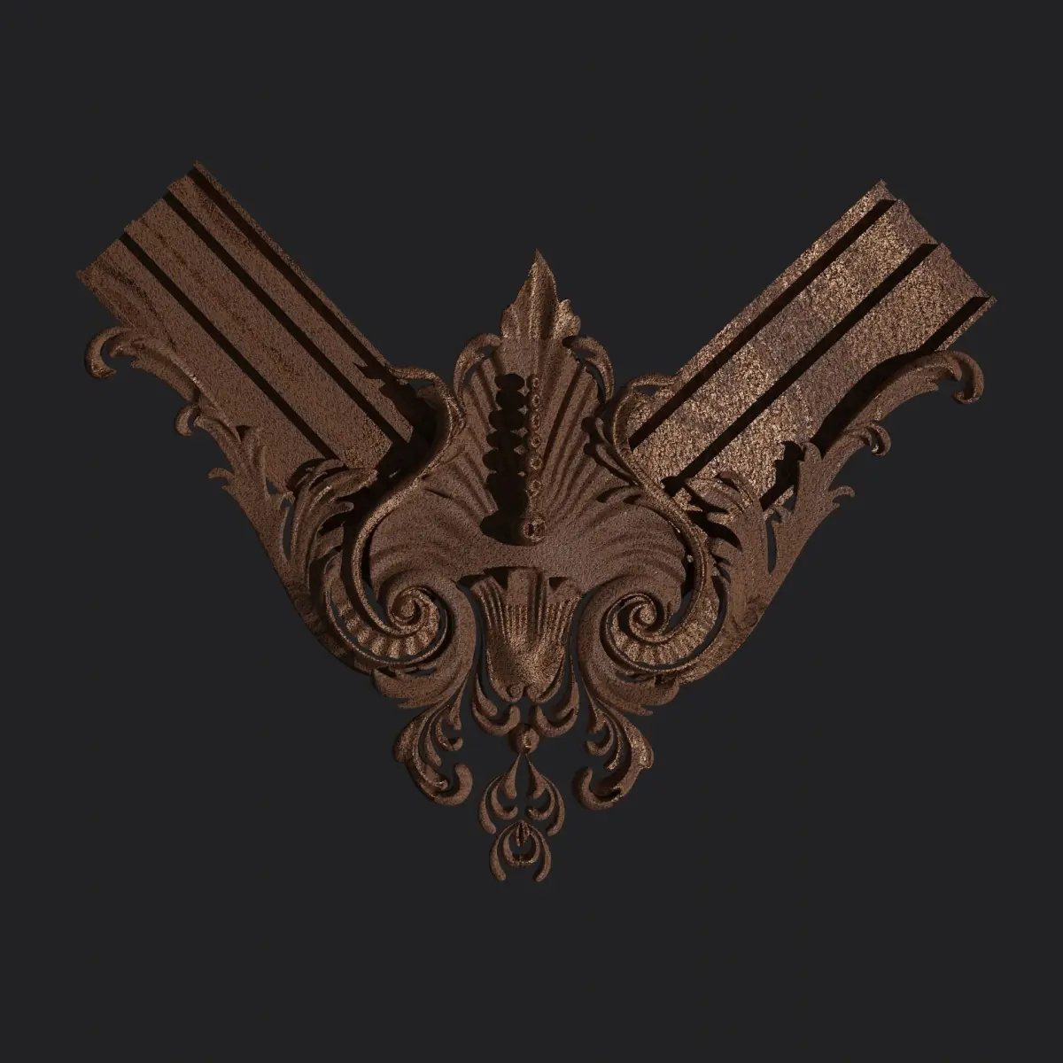 Decorative ornament, molding carving, or wood fretwork for 3d print or visualization in projects.