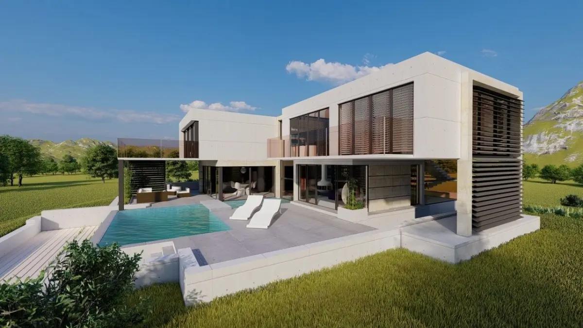 The design of the full facilities of the villa with all the materials and the interior design of all the spaces and the exterior with high quality and adjustable in rendering engines that you can see and change different parts. It is also available in different formats.format: max. obj. lum. rev. skp. fbx. stl. cad. dwf. 3ds. jpg